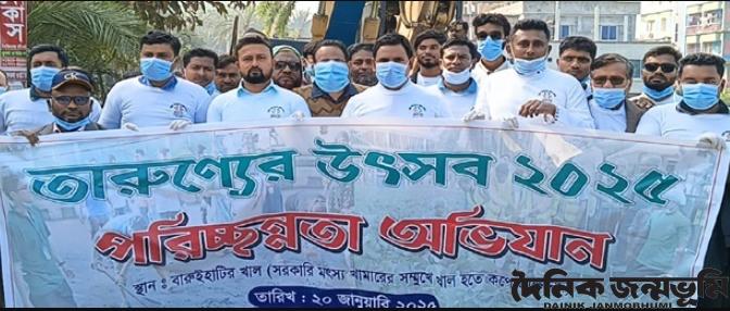 তালা প্রতিনিধি : তালায় তারুণ্যের উৎসব উপলক্ষে পরিচ্ছন্নতা অভিযানের অংশ হিসেবে সদর ইউনিয়নের সামনে দিয়ে প্রবাহিত খালটি উপজেলা সরকারি মৎস্য খামার হতে কপোতাক্ষ নদ পর্যন্ত সংস্কার কাজের উদ্বোধন করা হয়েছে। সোমবার (২০ জানুয়ারি) সকালে উপজেলা প্রাশাসনের আয়োজনে তালা উপজেলা নির্বাহী কর্মকর্তা ও উপজেলা প্রশাসক শেখ মো. রাসেল ওই কর্মসূচি উদ্বোধন করেন। এ সময় উপস্থিত ছিলেন তালা উপজেলা সিনিয়র মৎস্য কর্মকর্তা মো. তারিক ইমাম, প্রাণিসম্পদ কর্মকর্তা ডাঃ মাসুম বিল্লাহ, উপজেলা প্রকৌশলী রথীন্দ্রনাথ হালদার, উপজেলা মাধ্যমিক শিক্ষা কর্মকর্তা সেখ ফিরোজ হোসেন, সমবায় কর্মকর্তা রফিকুল ইসলাম, নির্বাচন কর্মকর্তা সাদিক বিন জামান, সাংবাদিক সেলিম হায়দারসহ উপজেলা বিভিন্ন দপ্তরের কর্মকর্তা ও বিভিন্ন প্রতিষ্ঠানের শিক্ষার্থীবৃন্দ। এদিকে তারুণ্যের উৎসব উপলক্ষ্যে এদিন বিকালে মিনি ম্যারাথন অনুষ্ঠিত হয়। জাতপুর বাজার থেকে তালা বাজার পর্যন্ত প্রায় ৭ কিলোমিটার ম্যারাথন প্রতিযোগীতায় বিভিন্ন বয়সের দৌড়বিদরা অশংগ্রহণ করেন। এ সময় বিজয়ী ৩জনসহ অংশগ্রহনকারীদের মাঝে পুরস্কার বিতরণ করা হয়।