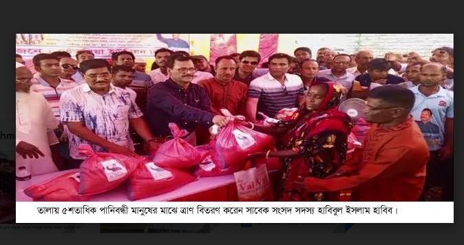 তিনি আরো বলেন, বিএনপি রাষ্ট্র ক্ষমতায় আসলে তালা অঞ্চলের মানুষের দীর্ঘদিনের জলাবদ্ধার হাত থেকে মুক্ত করা হবে। এজন্য কপোতাক্ষ নদ সংলগ্ন গোপালপুর খাল ও শালিখা নদী পুনঃখনন করা হবে। এ সময় আগামী এক মাসের মধ্যে তিনি জলবদ্ধতা মুক্ত করার ঘোষণা দেন। অনুষ্ঠানে তেঁতুলিয়া, দেওয়ানীপাড়া, হাতবাস, শিরাশুনি,সুভাষিনী,নওয়াপাড়া, মদনপুর এবং জাতপুর এলাকার ৫ শতাধিক পাবিারের মাঝে প্রতি পরিবারে ১০ কেজি করে চাল,তেল,আলু,পিয়াজ,ডাল তুলে দ্ওেয়া হয়।