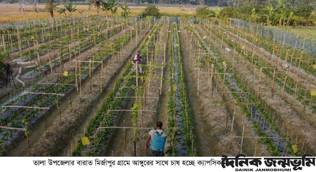 তালায় বাণিজ্যিকভাবে আঙ্গুরের সাথে ক্যাপসিকাম চাষ