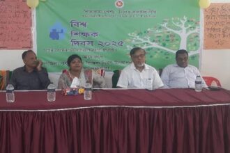 তালা প্রতিনিধি : “শিক্ষকতা পেশা: মিলিত প্রচেষ্টার দীপ্তি”এই প্রতিপাদ্য সামনে রেখে সাতক্ষীরার তালায় বিশ্ব শিক্ষক দিবস পালিত হয়েছে। দিবসটি উপলক্ষ্যে রবিবার (৫ অক্টোবর) সকালে তালা শহীদ আলী আহম্মদ সরকারি বালিকা বিদ্যালয়ে এক আলোচনা সভা অনুষ্ঠিত হয়। সভায় প্রধান অতিথি হিসেবে উপস্থিত ছিলেন তালা উপজেলা নির্বাহী অফিসার দীপা রানী সরকার। আলোচনা সভায় সভাপতিত্ব করেন তালা উপজেলা মাধ্যমিক শিক্ষা অফিসার মোঃ আতিয়ার রহমান। উপজেলা মাধ্যমিক শিক্ষা অফিসের একাডেমিক সুপারভাইজার প্রভাস কুমার দাস ও প্রভাষক গাজী আছাদুজ্জামানের সঞ্চালনায় সভায় বিশেষ অতিথি হিসেবে উপস্থিত ছিলেন তালা মহিলা কলেজের ভারপ্রাপ্ত অধ্যক্ষ সেখ শফিকুল ইসলাম, প্রাক্তন অধ্যক্ষ মোঃ আব্দুর রহমান, পাটকেলঘাটা হারুন অর রশিদ কলেজের ভারপ্রাপ্ত অধ্যক্ষ মোঃ আব্দুল গফুর, পাটকেলঘাটা ফাজিল মাদ্রাসার অধ্যক্ষ মো. আব্দুল কুদ্দুস, তালা উপজেলা মাধ্যমিক শিক্ষক সমিতির আহবায়ক মোঃ মইনুল ইসলাম, শহীদ আলী আহম্মেদ সরকারী বালিকা উচ্চ বিদ্যালয়ের ভারপ্রাপ্ত প্রধান শিক্ষক মোঃ ফজর আলী, উপজেলা মাধ্যমিক শিক্ষক সমিতির সভাপতি জগদীশ হালদার প্রমুখ।