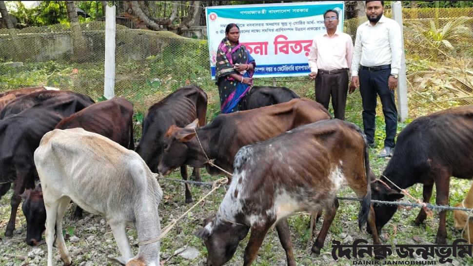 তালা প্রতিনিধি : তালা উপজেলা প্রাণিসম্পদ দপ্তর ও ভেটেরিনারি হাসপাতালের আয়োজনে সমতল ভূমিতে বসবাসরত অনগ্রসর ক্ষুদ্র নৃ-গোষ্ঠীর আর্থ সামাজিক ও জীবন মানোন্নয়নের লক্ষ্যে সমন্বিত প্রাণিসম্পদ প্রকল্পের আওতায় ২৪ জন সুফলভোগী মুন্ডা সম্প্রদায়ের মাঝে একটি করে বকনা গরু বিতরণ করা হয়। রবিবার (২৩ মার্চ) অফিস চত্বরে বিতরণ অনষ্ঠানে সভাপতিত্ব করেন তালা উপজেলা প্রাণিসম্পদ অফিসার ডাঃ মাসুম বিল্লাহ। প্রধান অতিথি হিসেবে উপস্থিত ছিলেন সাতক্ষীরা জেলা প্রাণিসম্পদ অফিসার ডাঃ বিষ্ণুপদ বিশ্বাস।