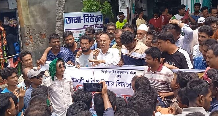তালা প্রতিনিধি : স্বৈরাচার খুনি শেখ হাসিনার বিচারের দাবীতে বাংলাদেশ জাতীয়তাবাদী যুবদলের কেন্দ্রীয় কর্মসূচির অংশ হিসেবে সাতক্ষীরার তালায় বিক্ষোভ মিছিল ও সমাবেশ অনুষ্ঠিত হয়েছে। বৃহস্পতিবার (১৫ আগষ্ট) সকালে উপজেলা যুবদলের আয়োজনে তালা আনিশা ক্লিনিকের সামনে থেকে একটি বিক্ষোভ মিছিল বের হয়। মিছিলটি উপজেলা প্রধান সড়ক প্রদক্ষিন শেষে একই স্থানে এসে শেষ হয়। পরে বিক্ষোভ সমাবেশে সভাপতিত্ব করেন উপজেলা যুবদলের আহ্বায়ক মির্জা আতিয়ার রহমান। উপজেলা যুবদলের যুগ্ন-আহ্বায়ক সাইদুর রহমান সাইদের পরিচালনায় প্রধান অতিথির বক্তব্য রাখেন উপজেলা বিএনপির সাধারণ সম্পাদক অধ্যক্ষ শফিকুল ইসলাম । এ সময় বক্তব্য রাখেন উপজেলা যুবদলের সাবেক সাধারণ সম্পাদক স.ম ইয়াছিন উল্লাহ, যুবদল নেতা ফারুক জোয়ার্দ্দার, স্বেচ্ছাসেবক দলের সভাপতি রফিকু ইসলাম দাদু ভাই, সাধারণ সম্পাদক আবুল কালাম আজাদ, তালা থানা ছাত্রদলের আহ্বায়ক হাফিজুর রহমান, সদস্য সচির এসকে ফারুক, তালা সরকারি কলেজ ছাত্রদলের সভাপতি রিপন ইসলাম প্রমুখ। এ সময় উপস্থিত ছিলেন উপজেলা কৃষকদলের আহ্বায়ক জাহাঙ্গীর হোসেন, যুবনেতা মেহেদী হাসান, আহম্মাদ, কামরুল সরদার, শাহিনুর রহমান, ছাত্রদলের যুগ্ন আহ্বায়ন মনিরুল ইসলাম, আজমল হোসেন জুয়েলসহ উপজেলা বিএনপি ও অঙ্গ সংগঠনের নেতৃবৃন্দ উপস্থিত ছিলেন। সমাবেশে বক্তারা স্বৈরাচারী শেখ হাসিনার আমলে সকল হত্যাকান্ডের বিচারের দাবী জানান।