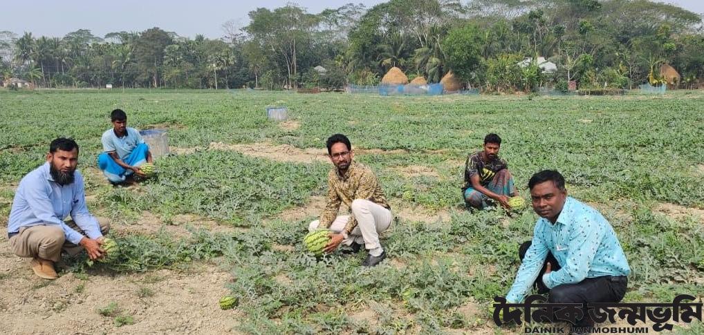 আহাম্মদ ইব্রাহিম অরবিল, দশমিনা(পটুয়াখালী) : পটুয়াখালীর উপকূলীয় উপজেলা দশমিনার চরাঞ্চলসহ বিস্তীর্ন জমিতে আগাম তরমুজের বাম্পার ফলন হয়েছে। উপজেলায় মাঠের পর মাঠ তরমুজের ক্ষেতে ভরে গেছে। ছোট বড় আগাম জাতের তরমুজ চারদিকে ছড়িয়ে ছিটিয়ে রয়েছে। উপজেলার কৃষকরা আগাম জাতের তরমুজ চাষ করে লাভের স্বপ্ন দেখছে। কৃষি সম্প্রসারন অধিদপ্তরের দাবী চলতি মৌসুমে ৭ থকে ৮ কোটি টাকার তরমুজ বিক্রি হবার সম্ভাবনা রয়েছে।