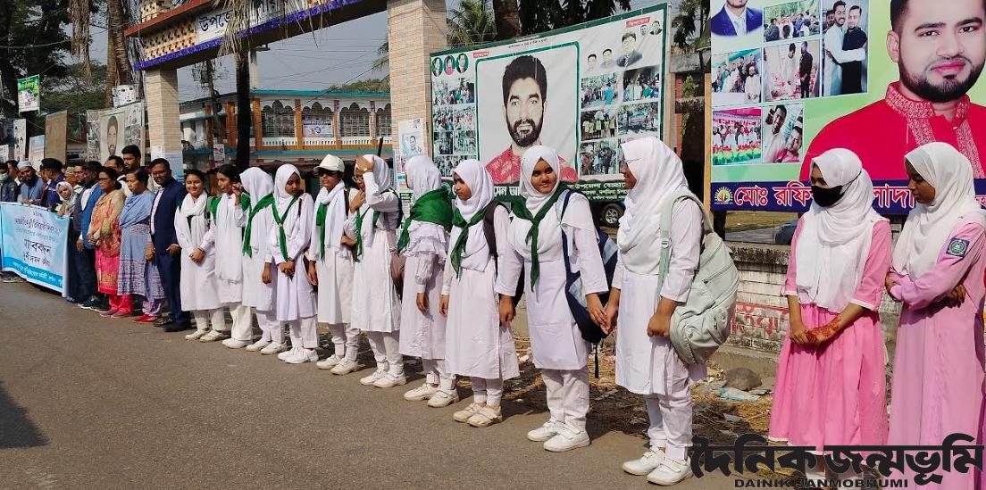 দশমিনা(পটুয়াখালী) প্রতিনিধি : পটুয়াখালীর দশমিনায় উপজেলায় আন্তর্জাতিক দুর্নীতি বিরোধী দিবস ২০২৫ ইং উপলক্ষ্যে উপজেলা দূর্নীতি প্রতিরোধ কমিটির আয়োজনে মঙ্গলবার সকালে পরিষদের সামনে দূর্নীতি বিরোধী মানববন্ধন ও আলোচনা সভা অনুষ্ঠিত হয়। দুর্নীতির বিরুদ্ধে তারুন্যের একতা,গড়বে আগামীর বন্ধন” এই শ্লোগানকে সামনে রেখে উপজেলা দূর্নীতি প্রতিরোধ কমিটির সভাপতি, প্রেসক্লাবের সহ-সভাপতি ও দৈনিক সংবাদ প্রতিনিধি আহাম্মদ ইব্রাহিম অরবিলের নেতৃত্বে মানববন্ধন অনুষ্ঠিত হয়। মানববন্ধন শেষে উপজেলা পরিষদের মিলনায়তনে আলোচনা সভায় প্রধান অতিথি ছিলেন উপজেলা নির্বাহী কর্মকর্তা মো.সাইফুল ইসলাম। সভায় বিশেষ অতিথি হিসাবে ছিলেন সহকারী কমিশনার(ভূমি) আবদুল্লাহ আল মামুন। আলোচনা সভায় বক্তব্য রাখেন উপজেলা কৃষি কর্মকর্তা কৃষিবিদ মো. জাফর আহমেদ,থানার পুলিশ কর্মকর্তা (তদন্ত) অনুপ দাস, উপজেলা দুর্নীতি প্রতিরোধ কমিটির সভাপতি আহাম্মদ ইব্রাহিম অরবিল, উপজেলা দুর্নীতি প্রতিরোধ কমিটির সাধারন সম্পাদক মোঃ মোশাররফ হোসেন প্রমুখ। সভায় উপস্থিত ছিলেন দশমিনা রিপোটার্স ইউনিটির সাধারন সম্পাদক ও দৈনিক নয়াদিগন্ত/এসটিভির প্রতিনিধি সঞ্জয় ব্যানার্জি, দশমিনা প্রেসক্লাবের সভাপতি ও দৈনিক আজকের পত্রিকার প্রতিনিধি মো. বেল্লাল হোসেনসহ বিভিন্ন সরকারী ও বেসরকারী দপ্তরের প্রধানগণ, বিভিন্ন শিক্ষা প্রতিষ্ঠানের শিক্ষার্থীগণ, স্থানীয় গন্যমান্য ব্যক্তিবর্গ, গণমাধ্যমকর্মী সাধারন জনগন। সভা শেষে দূর্নীতি বিরোধ বিভিন্ন ধরনের ব্যানার ও পোষ্টার প্রদর্শনী করা হয়। আলোচনা সভায় বক্তারা দূর্নীতির বিরুদ্ধে সোচ্চার হয়ে কাজ করার অঙ্গীকার ব্যক্ত করেন।