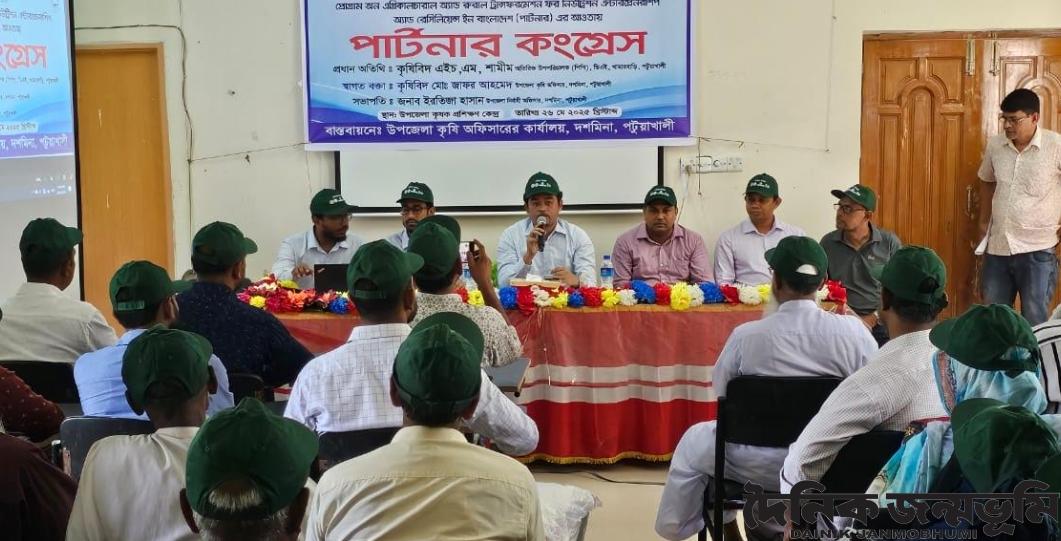 দশমিনা (পটুয়াখালী)প্রতিনিধি : পটুয়াখালীর দশমিনায় উপজেলা কৃষি সম্প্রসারন অধিদপ্তরের আয়োজনে কৃষক প্রশিক্ষন কেন্দ্রের হলরুমে দিনব্যাপি পার্টনার কংগ্রেস কর্মশালা অনুষ্ঠিত হয়। ২০২৪-২০২৫ অর্থ বছরে প্রোগ্রাম অন এগ্রিকালচারাল এন্ড রুরাল ট্রান্সফরমেশন ফর নিউট্রিশন এন্টারপ্রেনরশিপ এন্ড রেজিলিয়েন্স ইন বাংলাদেশের(পার্টনার) আওতায় উপজেলা কৃষি সম্প্রসারন অধিদপ্তর এই কর্মশালার আয়োজন করে। উপজেলা নির্বাহী কর্মকর্তা ইরতিজা হাসান’র সভাপতিত্বে কর্মশালায় প্রধান অতিথি ছিলেন জেলা ডিএই খামারবাড়ী পটুয়াখালীর অতিরিক্ত উপপরিচালক কৃষিবিদ এইচ.এম.শামীম। কর্মশালায় স্বাগত বক্তব্য রাখেন উপজেলা কৃষি কর্মকর্তা কৃষিবিদ মো. জাফর আহমেদ। কর্মশালায় অল্প পরিমানে কীটনাশক ও রাসায়নিক সার ব্যবহার,বিষমুক্ত সবজি-ফসল উৎপাদন,মাটি পরীক্ষাসহ বিভিন্ন কৃষি বিষয় নিয়ে দিক নির্দেশনামূলক আলোচনা অনুষ্ঠিত হয়।
