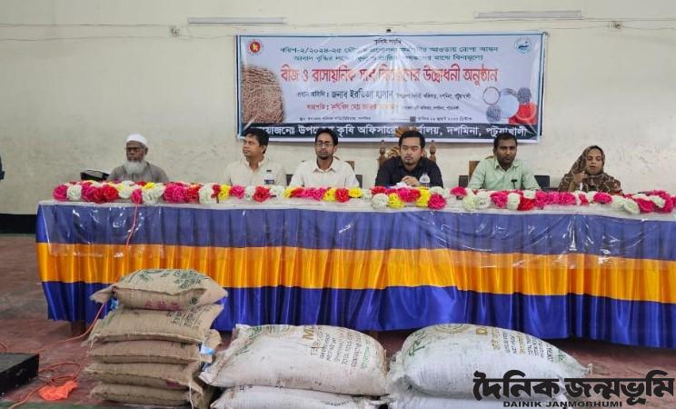 দশমিনা (পটুয়াখালী) প্রতিনিধি : পটুয়াখালীর দশমিনা উপজেলায় কৃষি সম্প্রসারন অধিদপ্তরের আয়োজনে পরিষদের মিলনায়তনে কৃষকদের মাঝে বিনামূল্যে বীজ ও রাসায়নিক সার বিতরন করা হয়। উপজেলায় খরিপ-২/২০২৪-২৫ মৌসুমে প্রনোদনা কর্মসূচীর আওতায় রোপা আমন ধানের আবাদ বৃদ্ধির লক্ষ্যে ক্ষুদ্র এবং প্রান্তিক কৃষকদের মাঝে বিনামূলে এই বীজ ও রাসায়নিক সার বিতরন করা হয়। উপজেলা কৃষি কর্মকর্তা কৃষিবিদ মো. জাফর আহমেদ’র সভাপতিত্বে অনুষ্ঠিত কৃষিপন্য বিতরনী অনুষ্ঠানে প্রধান অতিথি ছিলেন উপজেলা নির্বাহী কর্মকর্তা ইরতিজা হাসান। বিতরনী অনুষ্ঠানে অন্যান্যদের মধ্যে উপস্থিত ছিলেন উপজেলা সহকারী কৃষি কর্মকর্তা মো. আনোয়ার হোসেন,উপজেলা জনস্বাস্থ্য প্রকৌশলী মো.শাহীন,উপজেলা মহিলা বিষয়ক কর্মকর্তা জেসমিন আক্তার, পূবালী ব্যাংক পিএলসি দশমিনা শাখার ব্যবস্থাপক রুবাইয়াত মোর্শেদ মিশুক প্রমুখ। অনুষ্ঠানে উপজেলার ৭টি ইউনিয়নের ক্ষুদ্র ও প্রান্তিক ২০৫০ জন কৃষকের মাঝে ৫কেজি বীজ, ১০কেজি ডিএপি ও ১৩ কেজি এমওপি সার প্রদান করা হয়।