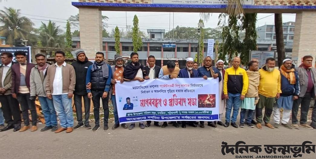 দশমিনায় দীপু দাস হত্যার বিচারের দাবীতে মানববন্ধন ও প্রতিবাদ সভা