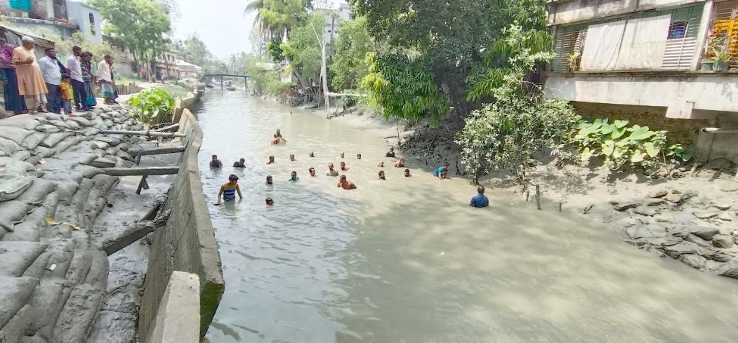 দশমিনায় বৈশাখ উপলক্ষ্যে চলছে পলো দিয়ে মাছ ধরা উৎসব