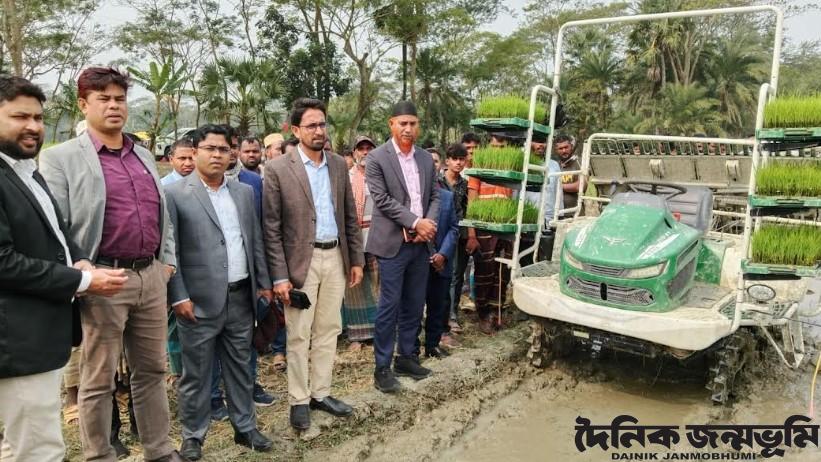 আহাম্মদ ইব্রাহিম অরবিল, দশমিনা(পটুয়াখালী) : পটুয়াখালীর দশমিনা উপজেলার ৭টি ইউনিয়নসহ চরাঞ্চলে জনসংখ্যা বৃদ্ধির সাথে সাথে কমছে কৃষি জমি। তাই স্বল্প জমিতে অধিক ধান উৎপাদন করে মানুষের খাদ্য চাহিদা পুরণের লক্ষ্যে কৃষি মন্ত্রণালয়ের নির্দেশনায় উন্নত প্রযুক্তির মাধ্যমে সমলয় পদ্ধতিতে যন্ত্রের মাধ্যমে জমিতে বোরো ধান রোপন কার্যক্রম শুরু হয়েছে। উপজেলার বাশঁবাড়ীয়া ইউনিয়নের বাঁশবাড়িয়া ব্লকে রাইস ট্রান্সপ্লান্টার মেশিন দিয়ে বোরো ধানের চারা রোপন করা হয়।