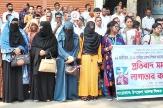 দাকোপ (খুলনা) প্রতিনিধি : ঢাকায় শিক্ষকদের দাবী আদায়ের সমাবেশে পুলিশি হামলা ও নির্যাতনের প্রতিবাদে খুলনার দাকোপে কর্মবিরতি ও মানববন্ধন সমাবেশ অনুষ্ঠিত হয়েছে। চালনা মোবারক মেমোরিয়াল কলেজ, বাজুয়া সুরেন্দ্রনাথ কলেজ, চালনা কলেজ ও চালনা মহিলা কলেজের এমপিও ভূক্ত শিক্ষক ও কর্মচারীবৃন্দ এ সমাবেশের যৌথ আয়োজন করেন। সোমবার দুপুর ১২টায় উপজেলা সদর চালনা ডাক বাংলো মোড়ে বাজুয়া সুরেন্দ্রনাথ কলেজের সহকারি অধ্যাপক প্রণবেন্দু রায়ের সভাপতিত্বে ও সহকারি অধ্যাপক অনিমেষ মন্ডলের পরিচালনায় অনুষ্ঠিত সমাবেশে বক্তৃতা করেন চালনা মোবারক মেমোরিয়াল কলেজের প্রভাষক মোহাম্মদ অহিদুজ্জামান, আকঞ্জি মোঃ রেজওয়ান আলী, সুরঞ্জিত কুমার প্রামাণ্য, জি.এম কাজল হোসেন, বাজুয়া সুরেন্দ্রনাথ কলেজের সহকারী অধ্যাপক সমরেন্দ্রনাথ সরকার, হোসাইন আলী গাজী, মিস শারমিন সুলতানা, মাইনুল ইসলাম, চালনা কলেজের ভারপ্রাপ্ত অধ্যক্ষ তপন কুমার রায়, সহকারী অধ্যাপক বিদ্যুৎ কুমার রায়, গোপাল চন্দ্র মন্ডল, নীলকমল সাহা, মোহাম্মদ জাহাঙ্গীর আলম, মোহাম্মদ ইমরান শেখ, চালনা মহিলা কলেজের ভারপ্রাপ্ত অধ্যক্ষ মৌসুমী রায়, প্রভাষক বিপ্লব সরকার, নির্মল জোদ্দার, মৃণালেন্দু রায়, দেবব্রত রায় প্রমুখ।