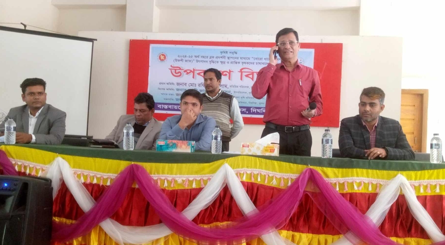 দিঘলিয়া প্রতিনিধি : দিঘলিয়া উপজেলায় ২০২৪-২৫ অর্থ বছরে ব্লক প্রদর্শনী স্থাপনের মাধ্যমে বোরো ধানের সমলয়ে উফসী জাত উৎপাদন বৃদ্ধিতে ক্ষুদ্র ও প্রান্তিক কৃষকদের চাষাবাদে সহায়তার জন্য উপকরণ বিতরণ অনুষ্ঠিত হয়।৮ই ডিসেম্বর উপজেলা সহকারী কমিশনার ভূমি দেবাংশু বিশ্বাসের সভাপতিত্বে অনুষ্ঠিত এ অনুষ্ঠানে প্রধান অতিথি হিসেবে উপস্থিত ছিলেন মোঃ রফিকুল ইসলাম অতিরিক্ত পরিচালক কৃষি সম্প্রসারণ অধিদপ্তর খুলনা অঞ্চল। বিশেষ অতিথি হিসেবে উপস্থিত ছিলেন কাজী জাহাঙ্গীর হোসেন উপ-পরিচালক কৃষি সম্প্রসারণ অধিদপ্তর খামার বাড়ি খুলনা। স্বাগত বক্তব্য উপজেলা কৃষি অফিসার মোঃ কিশোর আহমেদ। অনুষ্ঠান শেষে প্রধান অতিথি দিঘলিয়ার ৭১ জন কৃষকের মাঝে ৫০ একর জমির জন্য ৬০০ কেজি ব্রি-১০০ জাতের ধানের বীজ, সাড়ে ৪ টন ইউরিয়া সার, ২ টন ডিএপি সার ও আড়াই টন এমওপি সার বিতরণ করা হয়। বিতরণকৃত এ ধানের চারা তৈরি করা হবে ট্রের উপরে। বিতরণকৃত এ ধানের বীজ থেকে চারা উৎপাদনের জন্য সাড়ে ৪ হাজার ট্রে বিতরণ করা হয়। ১ ট্রেতে উৎপাদিত ধানের চারা এক শতক জমিতে রোপন করা যাবে। রাইচ ট্রাস প্লান্টার মেশিনের সাহায্যে জমিতে এ ধানের চারা সারিতে রোপন করা যাবে। ট্রেতে ধান বোপনের ২৫/২৭ দিনের মধ্যে ধানের চারা রোপন উপযোগী হবে বলে কৃষি দপ্তর সূত্রে জানা যায়।