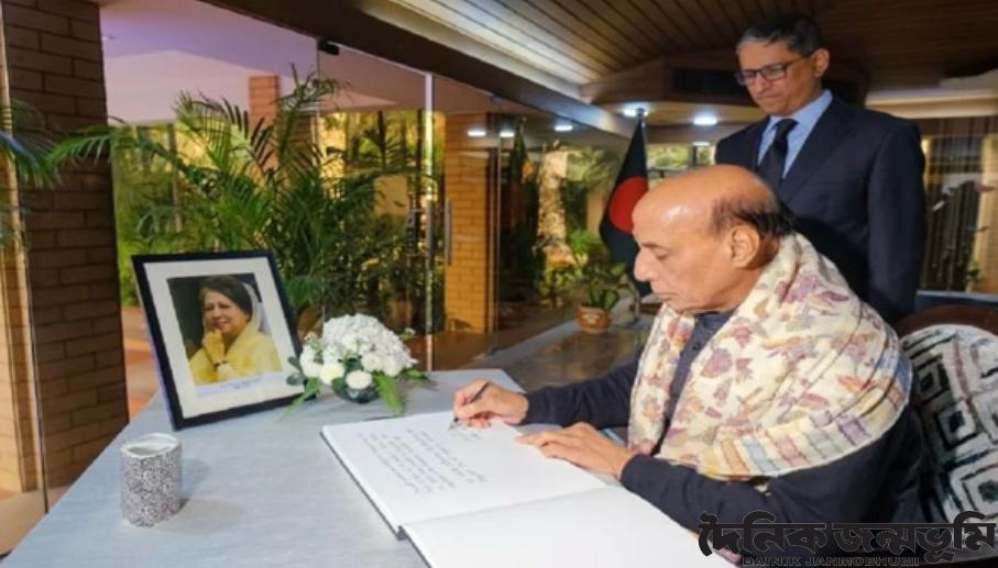 বৃহস্পতিবার (১ জানুয়ারি) দুপুরে দিল্লিতে অবস্থিত বাংলাদেশ হাইকমিশনে যান রাজনাথ সিং। হাইকমিশনে গিয়ে সাবেক প্রধানমন্ত্রী খালেদা জিয়ার জন্য রাখা শোক বইতে নিজের বার্তা লেখেন ও স্বাক্ষর করেন এবং বেগম খালেদা জিয়ার প্রতি শ্রদ্ধা জানান।