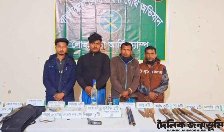 ডেস্ক রিপোর্ট : নড়াইলের লোহাগড়া উপজেলায় অভিযান চালিয়ে আগ্নেয়াস্ত্র, গুলি ও বিপুল পরিমাণ দেশীয় অস্ত্র উদ্ধার করেছে যৌথ বাহিনী। এ সময় চারজনকে গ্রেফতার করা হয়েছে।