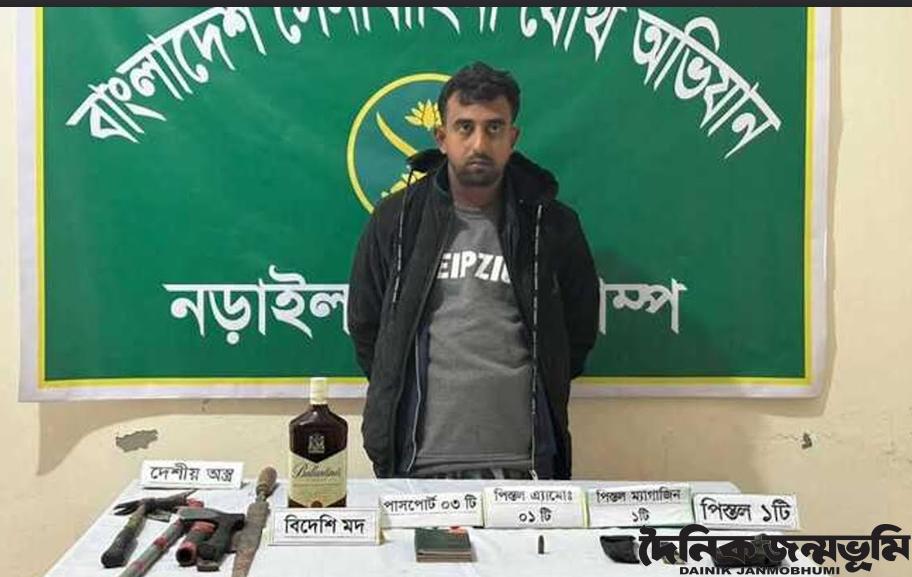 নড়াইলে আগ্নেয়াস্ত্র গুলি ও মদসহ যুবক গ্রেফতার