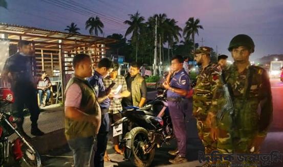 নড়াইলে চেকপোস্টে বাস ও মোটরসাইকেল আটক, জরিমানা