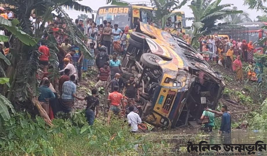 হুমায়ুন কবীর রিন্টু , নড়াইল : নড়াইল সদর উপজেলায় যাত্রীবাহী বাস ও ট্রাকের মুখোমুখি সংঘর্ষে নারী ও শিশু সহ অন্তত ১৫ জন আহত হয়েছেন। শুক্রবার (১০ অক্টোবর) বিকেলে নড়াইল–যশোর মহাসড়কের তুলারামপুর হাইওয়ে থানার সামনে এ দুর্ঘটনা ঘটে। তুলারামপুর হাইওয়ে থানার পুলিশ সার্জেন্ট ইমরান আলী বিষয়টি নিশ্চিত করেছেন। আহতদের মধ্যে রয়েছেন— ট্রাকচালক এনামুল হক, কবিতা, সাথী, রিজিয়া, আন্না, আরিয়ান, রত্না, কল্পনা, আরজিনা, মিনতী, সুভদ্রা, অনিমা, আকাশ, সুলতানা ও উর্মিলা প্রমুখ। প্রত্যক্ষদর্শী ও পুলিশ জানায়, নড়াইল থেকে ছেড়ে যাওয়া একটি আন্তঃজেলা যাত্রীবাহী বাস যশোরের দিকে যাচ্ছিল। এ সময় বিপরীত দিক থেকে আসা বেনাপোলগামী মালবোঝাই বিআরটিসির একটি ট্রাকের সঙ্গে বাসটির মুখোমুখি সংঘর্ষ হয়। সংঘর্ষের পর বাসটি নিয়ন্ত্রণ হারিয়ে সড়ক থেকে ছিটকে পাশের পুকুরে পড়ে যায়। খবর পেয়ে স্থানীয়রা দ্রুত আহতদের উদ্ধার করে নড়াইল সদর হাসপাতালে পাঠান। পরে হাইওয়ে থানা পুলিশ ও ফায়ার সার্ভিস ঘটনাস্থলে উপস্থিত হয়ে উদ্ধার কার্যক্রম চালায়। বাসের ভেতরে আটকে পড়া কয়েকজন যাত্রীকে ফায়ার সার্ভিসের সদস্যরা উদ্ধার করে হাসপাতালে নিয়ে যান। নড়াইল সদর হাসপাতালের জরুরি বিভাগের চিকিৎসক শরীফ মো. হাসান ফেরদৌস জানান, দুর্ঘটনায় আহত ১৫ জনকে হাসপাতালে ভর্তি করা হয়েছে। প্রাথমিক চিকিৎসা শেষে তাদের মধ্যে গুরুতর আহত ট্রাকচালক এনামুল হক ও উর্মিলাকে উন্নত চিকিৎসার জন্য খুলনায় পাঠানো হয়েছে। তুলারামপুর হাইওয়ে থানার সার্জেন্ট ইমরান আলী বলেন, “দুর্ঘটনার খবর পেয়ে আমরা দ্রুত ঘটনাস্থলে পৌঁছাই। ফায়ার সার্ভিসের দল উদ্ধার কাজ সম্পন্ন করেছে। বর্তমানে নড়াইল–যশোর মহাসড়কে যান চলাচল স্বাভাবিক রয়েছে।”