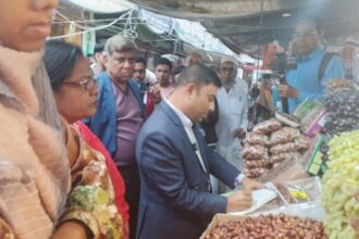 নড়াইল প্রতিনিধি : নড়াইলের রূপগঞ্জ বাজারে রমজানের প্রথম দিনেই জাতীয় ভোক্তা অধিকার সংরক্ষণ অধিদফতর অভিযান পরিচালনা করেছে। বৃহস্পতিবার (১৯ ফেব্রুয়ারি) দুপুরে এ অভিযান পরিচালনা করা হয়। অভিযানে বিভিন্ন অপরাধে ২ জন ফল ও ১ জন সবজি ব্যবসায়ীকে ৭ হাজার টাকা জরিমানা করা হয়েছে। অভিযানে ফিরোজ ফল ভান্ডারকে ৫ হাজার, আলম ফল ভান্ডারকে ১ হাজার এবং আমির হামজা সবজি ভান্ডারকে ১ হাজার টাকা জরিমানা করা হয়েছে। ভোক্তা অধিকার সংরক্ষণ অধিদফতর নড়াইলের সহকারী পরিচালক শামীম হাসান বলেন, পবিত্র রমজান মাসে নিত্যপণ্যের দাম সহনশীল রাখতে এ অভিযান পরিচালনা করা হয়েছে। এ ধরনের অভিযান অব্যাহত রাখার কথা জানিয়ে তিনি বলেন, একই প্রতিষ্ঠান একই ধরনের অপরাধ পুনরায় করলে তাকে আরোও অধিক জরিমানা করা হবে। অভিযান পরিচালনাকালে নড়াইল রিপোর্টাার্স ইউনিটি’র সভাপতি হুমায়ুন কবীর রিন্টু , সাংবাদিক ও অবসরপ্রাপ্ত কলেজ শিক্ষক মলয় নন্দী , সাংবাদিক আসাদুর রহমান, সাংবাদকি তাহের মোল্যা সহ অনেকে উপস্থিত ছিলেন।