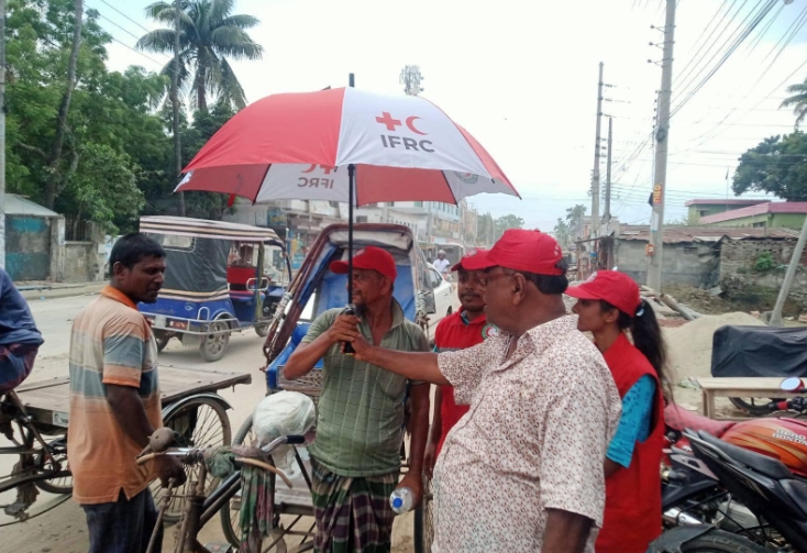 বাংলাদেশ রেড ক্রিসেন্ট সোসাইটি নড়াইল ইউনিট‘র সাধারণ সম্পাদক কাজী ইসমাইল হোসেন লিটনের নেতৃত্বে শহরের আদালত সড়ক, নড়াইল চৌরাস্তা, পুরাতন বাসটার্মিনাল এলাকা সহ বিভিন্ন স্থানে সড়কে দাড়িয়ে ভ্যান চালক সহ শ্রমজীবিদের মাঝে তীব্র খরতাপ হতে রক্ষা পেতে ছাতা, ক্যাপ ও পানির বোতল তুলে দেয়া হয়। বাংলাদেশ রেড ক্রিসেন্ট সোসাইটি নড়াইল ইউনিটের কার্যনির্বাহী সদস্য বীরমুক্তিযোদ্ধা সাইফুর রহমান হিলু, পৌর কাউন্সিলর রেজাউল বিশ্বাস, রেডক্রিসেন্ট সোসাইটির যুব প্রধান শামীম আহম্মেদ শুভ, উপ যুব প্রধান বাবর মির্জা রনি, সদস্য সাজ্জাদ মোল্যা, পলাশ, প্রীতি, সুমি কর্মকার, অমিত সহ অনেকে।