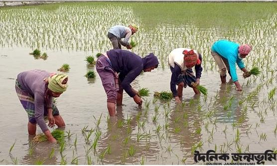 নড়াইলে রৌদ্রজ্জ্বল আবহাওয়ায় বোরো ধান রোপনের ধুম