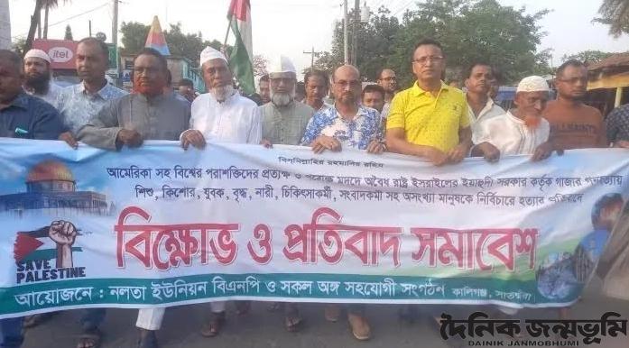 সিরাজুল ইসলাম, শ্যামনগর : সাতক্ষীরার কালিগঞ্জ উপজেলার নলতা ইউনিয়ন বিএনপি ও সকল অঙ্গ সহযোগি সংগঠনের আয়োজনে রবিবার বিকাল সাড়ে ৪ টায় নলতা হাটখোলা থেকে এক প্রতিবাদ মিছিল বের হয়ে প্রধান প্রধান সড়ক প্রদক্ষিণ করে নলতা হাটখোলায় এসে প্রতিবাদ সমাবেশ অনুষ্ঠিত হয়। উক্ত সমাবেশে বিএনপির নলতা ইউনিয়ন শাখার সাবেক সাংগঠনিক সম্পাদক কিসমতুল বারির সভাপতিত্বে বক্তব্য রাখেন ৬নং নলতা ইউপি চেয়ারম্যান মোঃ আজিজুর রহমান পাড়, বাংলাদেশ জাতীয়তাবাদী দল বিএনপির নলতা ইউনিয়ন সভাপতি রফিকুল ইসলাম খোকন, বাংলাদেশ জাতীয়তাবাদী যুবদলের কালিগঞ্জ উপজেলা সদস্য সচিব শেখ আব্দুল আজিজ, বাংলাদেশ জাতীয়তাবাদী ছাত্রদলের সাবেক জেলা সিনিয়র সহ—সভাপতি ও জেলা আহবায়ক সদস্য জাকির হোসেন রাজু, কালিগঞ্জ উপজেলা ছাত্রদলের আহবায়ক ফরহাদ হোসেন সাদ্দাম, নলতা ইউনিয়ন স্বেচ্ছাসেবক দলের সভাপতি ও উপজেলা স্বেচ্ছাসেবক দলের সিনিয়র সহ—সভাপতি শামীম পারভেজ, নলতা ইউনিয়ন ছাত্রদলের সভাপতি আফজাল হোসেন, অন্যান্যদের মধ্যে উপস্থিত ছিলেন ছাত্রনেতা মোঃ বাপ্পি হোসেন, নলতা ইউনিয়ন যুবদলের সিনিয়ার সহ—সভাপতি শামসুর রহমান, যুবদল নেতা ইউনুস হোসেন, কৃষক দল নেতা হাবিবুল ইসলাম, যুবদল নেতা আব্দুল বারী, মোঃ শহীদ হোসেন, ইব্রাহিম খলিল প্রমুখ।