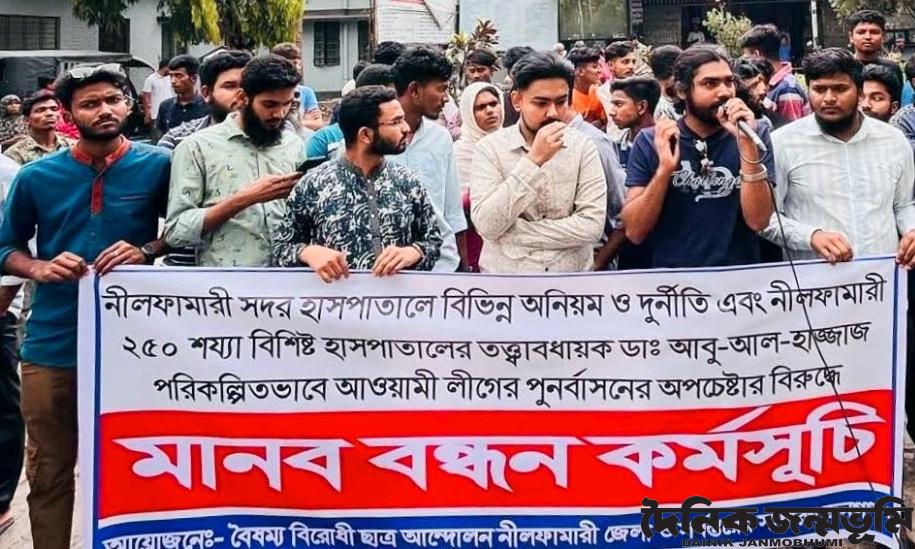 নীলফামারী জেনারেল হাসপাতালের তত্ত্বাবধায়কের অপসারণ চেয়ে মানববন্ধন