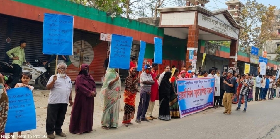 পাইকগাছায় অবৈধভাবে হ্যাচারি নির্মাণের প্রতিবাদে মানববন্ধন