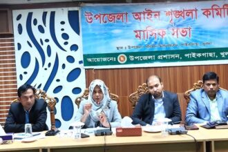 পাইকগাছা অফিস : পাইকগাছায় উপজেলা আইনশৃঙ্খলা কমিটির মাসিক সভা ও উপজেলা পরিষদের মাসিক সমন্বয় সভা অনুষ্ঠিত হয়েছে। মঙ্গলবার সকালে উপজেলা পরিষদ মিলনায়তনে উপজেলা আইনশৃঙ্খলা কমিটির মাসিক সভা এবং উপজেলা পরিষদের মাসিক সমন্বয় সভা দু’টি উপজেলা নির্বাহী অফিসার মাহেরা নাজনীন এর সভাপতিত্বে অনুষ্ঠিত হয়। উভয় অনুষ্ঠানে বিশেষ অতিথি ছিলেন, উপজেলা সহকারী কমিশনার (ভূমি) মোঃ ইফতেখারুল ইসলাম শামীম, ওসি (তদন্ত) তুষার কান্তি দাস, ডাঃ মোঃ ইব্রাহিম গাজী, উপাধ্যক্ষ মিহির বরণ মন্ডল ও ডিজিএম মোঃ ছিদ্দিকুর রহমান। সভায় জরায়ুমুখ ক্যান্সার প্রতিরোধ এইচপিভি টিকা দিতে সকলকে উদ্বুদ্ধকরণ, চুরি ও মাদক নিয়ন্ত্রণ, ঘের দখল, পুলিশের কার্যক্রম আরও গতিশীল করা, দুর্বল ভেড়িবাঁধ সংস্কার করা, বাল্যবিবাহ ও ডেঙ্গু প্রতিরোধে কার্যকর ব্যবস্থা গ্রহণ, বাসস্ট্যান্ড নির্মাণ সহ আইন-শৃঙ্খলা বিষয়ক গুরুত্বপূর্ণ আলোচনা ও সিদ্ধান্ত গৃহীত হয়। এসময় সিনিয়র উপজেলা মৎস্য কর্মকর্তা সৈকত মল্লিক, প্রকৌশলী মোঃ শাফিন শোয়েব, বন কর্মকর্তা প্রবীর কুমার দত্ত, অফিসার শাহাজাহান আলী শেখ, শিক্ষা অফিসার বিদ্যুৎ রঞ্জন সাহা, সমাজসেবা কর্মকর্তা অনাথ কুমার বিশ্বাস, পৌর প্রকৌশলী নুর মোহাম্মদ, খাদ্য নিয়ন্ত্রক মোঃ হাসিবুর রহমান, সমবায় অফিসার মোঃ হুমায়ুন কবির, জনস্বাস্থ্য প্রকৌশলী শাহাদাৎ হুসাইন, পিএসবি শাখা ব্যবস্থাপক জয়ন্তী জয়ন্ত কুমার ঘোষ, সহকারি প্রোগ্রামার মৃদুল কান্তি দাশ, উপজেলা দারিদ্র্য বিমোচন অফিসার মোঃ সফিউর রহমান, কৃষি সম্প্রসারণ কর্মকর্তা এস এম মনিরুল হুদা, পিআইও ইমরুল কায়েস, আনসার ও ভিডিপি কর্মকর্তা মৌলদা খাতুন, অধ্যক্ষ আজহার আলী, প্রধান শিক্ষক মুন্সী কামরুজ্জামান, মোঃ আব্দুল ওহাব, পরিবার পরিকল্পনা কর্মকর্তা আব্দুল্লাহ আল মামুন, সহকারী যুব উন্নয়ন কর্মকর্তা জিএম বাবলুর রহমান, ইউপি চেয়ারম্যান আ. কামাল আজাদ ও আ. ছালাম কেরু, প্যানেল চেয়ারম্যান পীযূষ কান্তি মন্ডল, দিলীপ মন্ডল, মোঃ আব্দুল্লাহ সরদার, মোঃ ইউনুছ আলি, জাহাঙ্গীর আলম, সাংবাদিক আব্দুল আজিজ, আলাউদ্দীন রাজা, পূর্ণ চন্দ্র মন্ডল, আ. হাশেম, ইউপি সদস্য পীযুষ কান্তি মন্ডল, মোঃ ইউনুছ আলী সহ বিভিন্ন দপ্তরের কর্মকর্তা, সাংবাদিক সহ গণ্যমান্য ব্যক্তিবর্গ উপস্থিত ছিলেন।