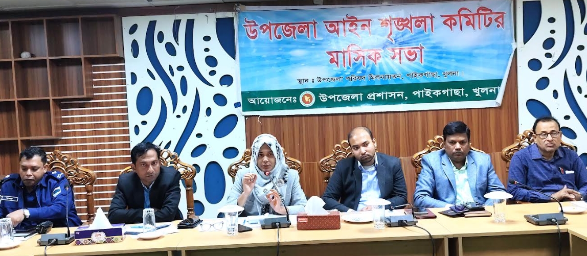 পাইকগাছা অফিস : পাইকগাছায় উপজেলা আইনশৃঙ্খলা কমিটির মাসিক সভা ও উপজেলা পরিষদের মাসিক সমন্বয় সভা অনুষ্ঠিত হয়েছে। মঙ্গলবার সকালে উপজেলা পরিষদ মিলনায়তনে উপজেলা আইনশৃঙ্খলা কমিটির মাসিক সভা এবং উপজেলা পরিষদের মাসিক সমন্বয় সভা দু'টি উপজেলা নির্বাহী অফিসার মাহেরা নাজনীন এর সভাপতিত্বে অনুষ্ঠিত হয়। উভয় অনুষ্ঠানে বিশেষ অতিথি ছিলেন, উপজেলা সহকারী কমিশনার (ভূমি) মোঃ ইফতেখারুল ইসলাম শামীম, ওসি (তদন্ত) তুষার কান্তি দাস, ডাঃ মোঃ ইব্রাহিম গাজী, উপাধ্যক্ষ মিহির বরণ মন্ডল ও ডিজিএম মোঃ ছিদ্দিকুর রহমান। সভায় জরায়ুমুখ ক্যান্সার প্রতিরোধ এইচপিভি টিকা দিতে সকলকে উদ্বুদ্ধকরণ, চুরি ও মাদক নিয়ন্ত্রণ, ঘের দখল, পুলিশের কার্যক্রম আরও গতিশীল করা, দুর্বল ভেড়িবাঁধ সংস্কার করা, বাল্যবিবাহ ও ডেঙ্গু প্রতিরোধে কার্যকর ব্যবস্থা গ্রহণ, বাসস্ট্যান্ড নির্মাণ সহ আইন-শৃঙ্খলা বিষয়ক গুরুত্বপূর্ণ আলোচনা ও সিদ্ধান্ত গৃহীত হয়। এসময় সিনিয়র উপজেলা মৎস্য কর্মকর্তা সৈকত মল্লিক, প্রকৌশলী মোঃ শাফিন শোয়েব, বন কর্মকর্তা প্রবীর কুমার দত্ত, অফিসার শাহাজাহান আলী শেখ, শিক্ষা অফিসার বিদ্যুৎ রঞ্জন সাহা, সমাজসেবা কর্মকর্তা অনাথ কুমার বিশ্বাস, পৌর প্রকৌশলী নুর মোহাম্মদ, খাদ্য নিয়ন্ত্রক মোঃ হাসিবুর রহমান, সমবায় অফিসার মোঃ হুমায়ুন কবির, জনস্বাস্থ্য প্রকৌশলী শাহাদাৎ হুসাইন, পিএসবি শাখা ব্যবস্থাপক জয়ন্তী জয়ন্ত কুমার ঘোষ, সহকারি প্রোগ্রামার মৃদুল কান্তি দাশ, উপজেলা দারিদ্র্য বিমোচন অফিসার মোঃ সফিউর রহমান, কৃষি সম্প্রসারণ কর্মকর্তা এস এম মনিরুল হুদা, পিআইও ইমরুল কায়েস, আনসার ও ভিডিপি কর্মকর্তা মৌলদা খাতুন, অধ্যক্ষ আজহার আলী, প্রধান শিক্ষক মুন্সী কামরুজ্জামান, মোঃ আব্দুল ওহাব, পরিবার পরিকল্পনা কর্মকর্তা আব্দুল্লাহ আল মামুন, সহকারী যুব উন্নয়ন কর্মকর্তা জিএম বাবলুর রহমান, ইউপি চেয়ারম্যান আ. কামাল আজাদ ও আ. ছালাম কেরু, প্যানেল চেয়ারম্যান পীযূষ কান্তি মন্ডল, দিলীপ মন্ডল, মোঃ আব্দুল্লাহ সরদার, মোঃ ইউনুছ আলি, জাহাঙ্গীর আলম, সাংবাদিক আব্দুল আজিজ, আলাউদ্দীন রাজা, পূর্ণ চন্দ্র মন্ডল, আ. হাশেম, ইউপি সদস্য পীযুষ কান্তি মন্ডল, মোঃ ইউনুছ আলী সহ বিভিন্ন দপ্তরের কর্মকর্তা, সাংবাদিক সহ গণ্যমান্য ব্যক্তিবর্গ উপস্থিত ছিলেন।