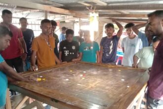 পাইকগাছা প্রতিনিধি : পাইকগাছায় নকআউট ক্যারামবোর্ড টুর্নামেন্ট এর ফাইনাল খেলা অনুষ্ঠিত হয়েছে। শুক্রবার দিনব্যাপী উপজেলার দেলুটী ইউনিয়নে গেউয়াবুনিয়ায় শ্রীশ্রী বাসন্তী পূজা উপলক্ষে ১৬ দলীয় ডাবলস নকআউট ক্যারামবোর্ড টুর্নামেন্ট এর ফাইনাল খেলা অনুষ্ঠিত হয়। দিশারী সংঘের আয়োজনে মন্দির প্রাঙ্গনে খেলায় চ্যাম্পিয়ন প্রিন্স সানা ও পিয়াল মিস্ত্রী, রানার্স আপ বরুন মন্ডল ও তন্ময় মন্ডল, ম্যান অব দ্যা টুর্নামেন্ট তন্ময় মন্ডল।