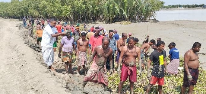 জন্মভূমি ডেস্ক : খুলনার পাইকগাছা উপজেলার দেলুটি ইউনিয়নের শিবসা নদীর তীরে ক্ষতিগ্রস্থ ওয়াপদার বাঁধ ভাংগনের সম্ভাবনা দেখা দিয়েছে। বিস্তীর্ণ এলাকা প্লাবিত হওয়ার আতংকে এলাকাবাসীর দাবীর প্রেক্ষিতে উপজেলার সোলাদানা ইউনিয়নের সাবেক চেয়ারম্যান এসএম এনামুল হক বাঁধ মেরামতের কাজ শুরু করেছেন। বুধবার সকালে দু-শতাধিক লোক নিয়ে ঝুকিপূর্ণ প্রায় এক কিলোমিটার এ বাঁধ মেরামতের কাজ শুরু করা হয়। উপজেলার দেলুটি ইউনিয়নের দেলুটি গ্রামের শিবসা নদীর তীরে ওয়াপদার বাঁধ ক্ষতিগ্রস্থ হয়ে মারাত্মক ঝুকিপূর্ণ হয়ে পড়েছে। জোয়ারের পানির চাপ বৃদ্ধি পেলে যেকোন মুহুর্তে বাঁধ ভেঙ্গে ইউনিয়নের ৫ টি গ্রাম প্লাবিত হওয়ার আশংকা দেখা দিয়েছে।