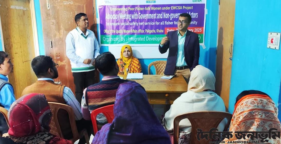 পাইকগাছা অফিস : দরিদ্র মৎস্যজীবী নারীদের ক্ষমতায়ন প্রকল্পের আওতায় সরকারি ও বেসরকারি কর্মকর্তাদের সাথে অ্যাডভোকেসি সভা অনুষ্ঠিত হয়েছে। মঙ্গলবার সকালে মহিলা বিষয়ক কর্মকর্তা কার্যালয়ের সম্মেলন কক্ষে উপজেলা মহিলা বিষয়ক কর্মকর্তা রেশমা আক্তার এর সভাপতিত্বে অনুষ্ঠিত পরামর্শ সভায় প্রধান অতিথি ছিলেন, সিনিয়র উপজেলা মৎস্য কর্মকর্তা সৈকত মল্লিক। আইডিও সংস্থার বাস্তবায়নে এবং অক্সফাম এর অর্থায়নে এ অ্যাডভোকেসি সভা অনুষ্ঠিত হয়। আইডিও প্রকল্পের প্রোগ্রাম অফিসার মো. আকরাম হোসেনের সঞ্চালনায় বক্তৃতা করেন, উপজেলা সমবায় কর্মকর্তার প্রতিনিধি সহকারী পরিদর্শক মো. তোরাব আলী ও মো. আমির হোসেন, সাংবাদিক পূর্ণ চন্দ্র মন্ডল, আইডিও'র মো. মনিরুজ্জামান ও হোসনেয়ারা খাতুন, মৎস্যজীবী নারীদের ক্ষমতায়ন প্রকল্পের মেঘনা গ্রুপের সভাপতি তেরেজা গোমেজ ও মেঘনা গ্রুপের সভাপতি মনিবালা দাশ। এসময় মৎস্যজীবী নারীদের ক্ষমতায়ন প্রকল্পের নারী সদস্যরা উপস্থিত ছিলেন। পরামর্শ সভায় সিনিয়র উপজেলা মৎস্য কর্মকর্তা সৈকত মল্লিক জেলে কার্ড ও প্রশিক্ষণ, মাছ ধরার আগে ও পরে করণীয় কি? এ সকল বিষয়ে বিস্তারিত আলোকপাত করেন। মহিলা কর্মকর্তা রেশমা আক্তার গর্ভকালীন ভাতা, দর্জি, বুটি প্রশিক্ষণ প্রদান এর বিষয়ে অবহিত করেন এবং সমবায় প্রতিনিধি সমবায় ভিত্তিক রেজিস্ট্রেশনের জন্য সর্বোচ্চ সহযোগিতার আশ্বাস দেন।