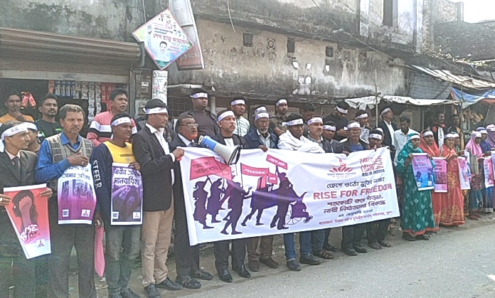 পাইকগাছায় নারী নির্যাতনের বিরুদ্ধে মানববন্ধন