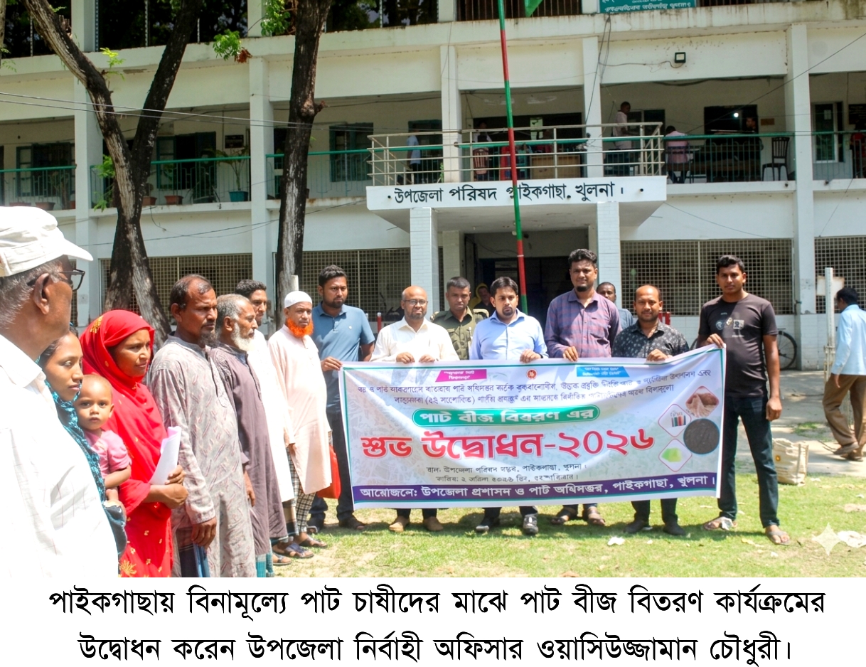 খুলনার পাইকগাছায় উন্নত প্রযুক্তি নির্ভর পাট ও পাট বীজ উৎপাদন এবং সম্প্রসারণ প্রকল্পের আওতায় তালিকাভুক্ত পাট চাষীদের মাঝে বিনামূল্যে পাট বীজ বিতরণ করা হয়েছে। ২ এপ্রিল বৃহস্পতিবার সকাল ১১টায় উপজেলা পরিষদ চত্বরে বস্ত্র ও পাট মন্ত্রণালয়ের আওতায় পাট অধিদপ্তর কর্তৃক বাস্তবায়নাধীন ‘উন্নত প্রযুক্তি নির্ভর পাট ও পাট বীজ উৎপাদন এবং সম্প্রসারণ (২য় সংশোধিত) শীর্ষক প্রকল্প’ এর অধীনে এই বিতরণ কার্যক্রমের উদ্বোধন করা হয়। উপজেলা প্রশাসন ও পাট অধিদপ্তর কর্তৃক আয়োজিত এই অনুষ্ঠানে বিনামূল্যে পাট বীজ বিতরণ কার্যক্রমের উদ্বোধন করেন উপজেলা নির্বাহী অফিসার ওয়াসিউজ্জামান চৌধুরী। সাথে ছিলেন উপজেলা কৃষি কর্মকর্তা কৃষিবিদ মো. একরামুল হোসেন, বিআরডিবি কর্মকর্তা ওয়াহিদ মুরাদ। অনুষ্ঠানে স্বাগত বক্তৃতা করেন উপ-সহকারী পাট উন্নয়ন কর্মকর্তা অনিরুদ্ধ কুমার বৈদ্য। সংশ্লিষ্ট সূত্র জানায়, উপজেলার হরিঢালী, কপিলমুনি, গদাইপুর, রাড়ুলী ও চাঁদখালী ইউনিয়নের মোট ১ হাজার জন নির্বাচিত পাট চাষীর প্রত্যেককে পর্যায়ক্রমে ১ কেজি করে উন্নত মানের পাট বীজ প্রদান করা হবে। উদ্বোধনী অনুষ্ঠানে কপিলমুনি ইউনিয়নের সুবিধাভোগী কৃষকদের মাঝে পাট বীজ বিতরণ করা হয়। উদ্বোধনকালে ইউএনও ওয়াসিউজ্জামান চৌধুরী বলেন, "পাট আমাদের সোনালী আঁশ। পরিবেশবান্ধব এই ফসলের আবাদ বৃদ্ধিতে সরকার কৃষকদের সব ধরনের সহায়তা দিচ্ছে। উন্নত প্রযুক্তি ও সঠিক বীজ ব্যবহারের মাধ্যমে কৃষকরা যেন লাভবান হতে পারেন, সেই লক্ষ্যেই এই প্রকল্প কাজ করে যাচ্ছে।"