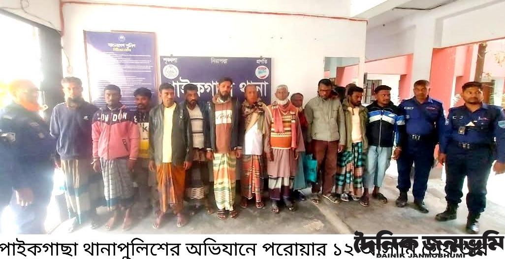 পাইকগাছা প্রতিনিধি : পাইকগাছা বিশেষ অভিযানে বিভিন্ন ইউনিয়ন থেকে ১২ পরোয়ানা ভুক্ত আসামিকে গ্রেফতার করেছে থানা পুলিশ। ২ ফেব্রুয়ারি সোমবার রাতে উপজেলার বিভিন্ন ইউনিয়নে ওই অভিযান চালানো হয়। এ সময় উপজেলার হরিঢালি ইউনিয়নের আপেল উদ্দিন মোড়লের ছেলে শরিফুল মোড়ল, লস্কার ইউনিয়নের জগদীশ মন্ডলের ছেলে উদয় কৃষ্ণ মন্ডল, রাড়ুলী ইউনিয়নের রজব গাজীর ছেলে মুন্না গাজী (২৬) চাঁদখালী ইউনিয়নের কৃষ্ণনগর গ্রামের মৃত্যু মাজন গাজীর ছেলে কালাম গাজি(৬০), একই ইউনিয়নে কৃষ্ণনগর গ্রামের বাবর আলী গাজীর ছেলে সিরাজুল গাজী (৫৮) মৃত্যু মোহাম্মদ আলী গাজীর ছেলে মান্নান গাজী (৭১),আব্দুল গাজীর ছেলে আবু মুসা গাজী (৩১) সবুর মালীর ছেলে উজ্জ্বল মালী (৪২) খালেদ গাজীর ছেলে মোস্তফা গাজী (৪৫) লিয়াকাত গাজী ছেলে ইসমাইল গাজী (৪০) সাজ্জাদ গাজীর ছেলে রুহুল আমিন গাজী (৫৩)রাডুলী ইউনিয়নের ভবানীপুর গ্রামের নওয়াব আলী গাজীর ছেলে আমিনুর গাজীকে পুলিশ গ্রেফতার করে। থানার অফিসার ইনচার্জ মো. রিয়াদ মাহমুদ বলেন, সোমবার রাতে অভিযান চালিয়ে ১২ পরোয়ানার আসামিকে গ্রেফতার করা হয়। মঙ্গলবার সকালে গ্রেফতার ব্যক্তিদেরকে পাইকগাছা সিনিয়র জুডিসিয়াল ম্যজিস্ট্রেট আদালতে পাঠানো হয়েছে। গত এক মাসে ১৪৮টি পরোয়ানার আসামিকে গ্রেফতার করে ওয়ারেন্ট তামিল করা হয়েছে।
