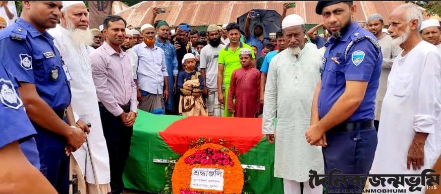 পাইকগাছা প্রতিনিধি : পাইকগাছায় উপজেলাধীন ৬নং লস্কার ইউনিয়নের আলমতলা গ্রামের বাসিন্দার বীর মুক্তিযোদ্ধা মোহাম্মদ আলী গাইন (৭১) কে উপজেলা প্রশাসনের পক্ষ থেকে শ্রদ্ধাঞ্জলি নিবেদন শেষে রাষ্ট্রীয় মর্যাদায় গার্ড অব অনার প্রদান করা হয়েছে। বুধবার বিকেলে লস্কর ইউনিয়নের আলমতলা আলিয়া মাদ্রাসা প্রাঙ্গণে মরহুমের জানাজা শেষে পাইকগাছা পৌরসভার সরল গ্রামে পারিবারিক কবরস্থানে দাফন সম্পন্ন করা হয়। উপজেলা প্রশাসন, মুক্তিযোদ্ধা সংসদের পক্ষ থেকে মরহুমের কফিনে পুস্পমাল্য অর্পন শেষে রাষ্ট্রীয় মর্যাদায় গার্ড অব অনার প্রদান করেন নির্বাহী ম্যাজিস্ট্রেট ও উপজেলা সহকারী কমিশনার (ভূমি) মো. ইফতেখারুল ইসলাম শামীম। এসময়ে থানা অফিসার ইনচার্জ মো. সবজেল হোসেন, সাবেক মুক্তিযোদ্ধা কমান্ডার গাজী রুহুল আমিন, সরদার আব্দুল মাজেদ, শহীদ কাজী, ব্যবসায়ী নিজাম উদ্দিন, মরহুমের পরিবার, আত্মীয় স্বজন, জনপ্রতিনিধি সহ স্থানীয় গণ্যমান্য ব্যক্তিবর্গ উপস্থিত ছিলেন। উল্লেখ্য, তিনি ক্যান্সারে আক্রান্ত হয়ে চিকিৎসাধীন অবস্থায় গত ১৫ এপ্রিল আলমতলায় নিজ বাসভবনে ভোর সোয়া ৫টার দিকে ইন্তেকাল করেছেন (ইন্না --- রাজিউন)।