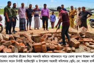 খুলনার পাইকগাছায় সরকারি জমি দখলমুক্ত ও শ্মশানঘাটের জায়গা নিয়ে দীর্ঘদিনের সীমানা বিরোধ নিষ্পত্তি করেছেন নির্বাহী ম্যাজিস্ট্রেট ও উপজেলা সহকারী কমিশনার (ভূমি) মো. ফজলে রাব্বী। ৩১ মার্চ মঙ্গলবার সকাল ১১টার দিকে উপজেলার গদাইপুর ইউনিয়ন ও বোয়ালিয়া এলাকায় এই অভিযান ও সমঝোতা কার্যক্রম পরিচালিত হয়। স্থানীয় সূত্রে জানা গেছে, গদাইপুর ইউনিয়নের ব্রিজের নিচে সরকারি জমি অবৈধভাবে দখল করে একটি মহল দোকান ঘর ও স্থায়ী স্থাপনা নির্মাণ করেছিল। এলাকাবাসীর সুনির্দিষ্ট অভিযোগের প্রেক্ষিতে বেলা ১১টার দিকে নির্বাহী ম্যাজিস্ট্রেট ও এসিল্যান্ড মো. ফজলে রাব্বী সেখানে উপস্থিত হয়ে উচ্ছেদ অভিযান শুরু করেন। মুহূর্তেই অবৈধ স্থাপনাগুলো ভেঙে দিয়ে সরকারি জায়গা জনসাধারণের জন্য উন্মুক্ত করা হয়। এরপর তিনি বোয়ালিয়া বীজ উৎপাদন খামার এলাকায় গিয়ে স্থানীয় সনাতন ধর্মাবলম্বীদের শ্মশানঘাটের জায়গা নিয়ে সৃষ্ট জটিলতা নিরসনে কাজ করেন। বোয়ালিয়া বীজ উৎপাদন খামার ও শ্মশানঘাটের সীমানা নিয়ে দুই পক্ষের মধ্যে দীর্ঘদিনের বিরোধ চলে আসছিল। এসিল্যান্ড উভয় পক্ষকে সাথে নিয়ে সরেজমিন মাপজোখ করেন এবং সবার সম্মতিক্রমে সীমানা নির্ধারণ করে দিয়ে বিরোধের স্থায়ী সমাধান করেন।