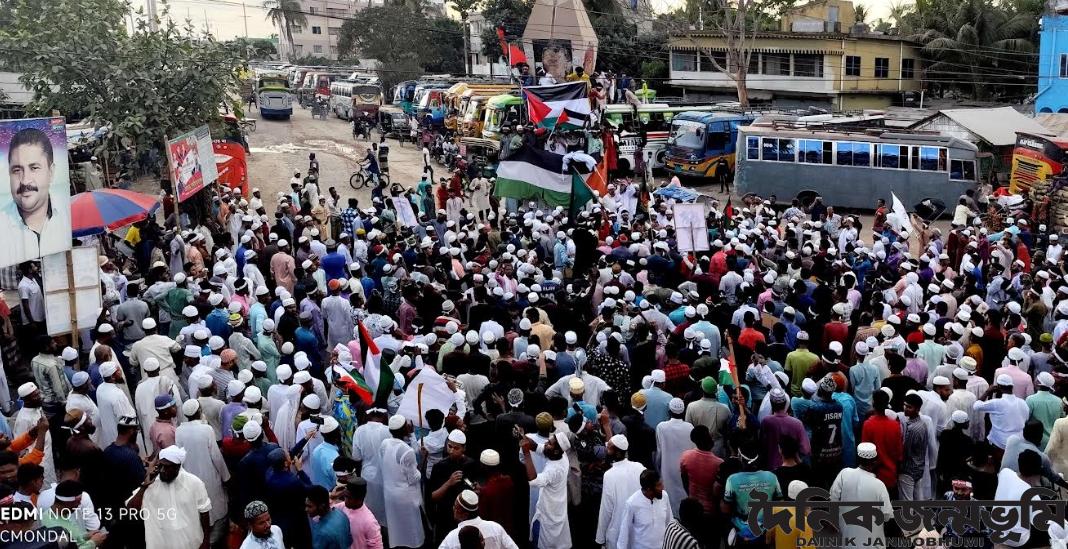 পাইকগাছা প্রতিনিধি : গাজায় ইসরাইলি ইয়াহুদী কর্তৃক ফিলিস্তিনি মুসলিম গণহত্যার প্রতিবাদে পাইকগাছায় হেফাজতে ইসলাম বাংলাদেশ উপজেলা শাখার উদ্যোগে স্মরণকালের বিক্ষোভ মিছিল ও সমাবেশ অনুষ্ঠিত হয়েছে। শুক্রবার বিকেলে পৌরসভা চত্বর হেফাজতে ইসলাম বাংলাদেশ উপজেলা শাখা কমিটির সভাপতি মুফতি কুদরতুল্লাহ কাসেমী এর সভাপতিত্বে প্রতিবাদ সমাবেশ অনুষ্ঠিত হয়। সমাবেশে হাফেজ মাওলানা সাইফুল ইসলাম এর সঞ্চালনায় বক্তৃতা করেন, উপজেলা কমিটির সেক্রেটারি মুফতি উয়ইস আহমেদ, মাও. আকবর হোসেন, মাও. রঈসুল ইসলাম, হাফেজ মাও. শামসুদ্দীন আহমদ, সাবেক ইউপি চেয়ারম্যান জুনায়েদুর রহমান, হাফেজ মাও. শহিদুল ইসলাম, আ. সবুর, সাইদুর রহমান, আব্দুর রহমান, মাও. আতাউল্লাহ, মাও. কুতুবুদ্দীন, মুফতি আব্দুল গাফফার, অধ্যক্ষ আজহার আলী, মাও. শরিফুল ইসলাম, সাদিকুর রহমান, বজলুর রহমান, মুফতি সাইফুল ইসলাম, মো. হাবিবুল্লাহ, মুফতি দ্বীন মোহাম্মদ, মুফতি মোফাজ্জল হোসেন, মাও. মনিরুল ইসলাম, নূরে আলম সিদ্দিকী, খায়রুল হক, মুফতি মাও. হাফিজুর রহমান, মাও. হারুনার রশিদ প্রমুখ। এসময় উপজেলা বিভিন্ন ইউনিয়ন ও পৌরসভা হেফাজতে ইসলামের হাজার হাজার নেতাকর্মী ও সমর্থকরা উপস্থিত ছিলেন। সমাবেশ টি জনসমুদ্র পরিনত হয়। সমাবেশ শেষে পৌরসভা চত্বর থেকে একটি বিক্ষোভ মিছিল প্রধান প্রধান সড়ক প্রদক্ষিণ করে সরল জিরোপয়েন্ট সমাপ্ত হয়। বক্তারা ইসরায়েলি পণ্য বর্জন সহ সারা বিশ্বের মুসলমানদের এক হওয়ার আহ্বান জানান। সর্বশেষ গায়েবানা জানাজার মাধ্যমে কর্মসূচির সমাপ্তি ঘটে।