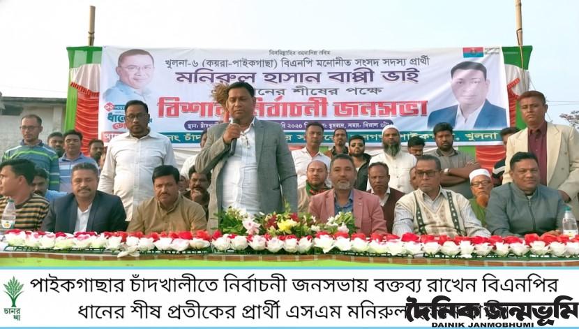 পাইকগাছা প্রতিনিধি :পাইকগাছার চাঁদখালীতে ধানের শীষ প্রতীকের নির্বাচনী জনসভা অনুষ্ঠিত হয়েছে। ৪ ফেব্রুয়ারী বুধবার বিকালে চাঁদখালী গরুর হাটের মাঠে চাঁদখালী ইউনিয়ন বিএনপি এ জনসভার আয়োজন করে। বিএনপি নেতা সরদার আলাউদ্দীন মাষ্টারের সভাপতিত্বে অনুষ্ঠিত জনসভায় প্রধান অতিথি ছিলেন খুলনা -৬ (পাইকগাছা-কয়রা) আসনের বিএনপি মনোনীত ধানের শীষ প্রতীকের প্রার্থী এসএম মনিরুল হাসান বাপ্পী। বিশেষ অতিথি ছিলেন উপজেলা বিএনপির আহবায়ক ডা. মোঃ আব্দুল মজিদ, সাবেক সাধারণ সম্পাদক এসএম এনামুল হক, সদস্য সচিব এসএম ইমদাদুল হক, জেলা স্বেচ্ছাসেবক দলের সদস্য সচিব আব্দুল মান্নান মিস্ত্রি, উপজেলা কৃষক দলের সভাপতি মেছের আলী সানা, উপজেলা বিএনপির যুগ্ম আহ্বায়ক আবুল হোসেন, উপজেলা স্বেচ্ছাসেবক দলের সাবেক সদস্য সচিব যজ্ঞেশ্বর সানা কার্ত্তিক, বিএনপি নেতা মনিরুল ইসলাম মনি মোল্লা, আসাদুজ্জামান ময়না। উপজেলা স্বেচ্ছাসেবক দলের সাবেক সিনিয়র যুগ্ম আহ্বায়ক মোল্লা ইউনুস আলী ও উপজেলা ছাত্রদলের সাবেক সদস্য সচিব নাজমুল হুদা মিন্টু'র সঞ্চালনায় অনুষ্ঠিত জনসভায় বক্তৃতা করেন, বিএনপি নেতা জুলফিকার মোড়ল, আব্দুল কাদের, হাবিবুর রহমান বেলাল, বিশ্বজিৎ সাধু, আব্দুস সালাম খান, ইউনিয়ন মহিলা দলের সভাপতি রেহানা পারভীন, উপজেলা ছাত্রদলের সদস্য সচিব সাদ্দাম হোসেন, লুৎফর রহমান সরদার, আমিন উদ্দিন শেখ, রজব আলী গাজী, হাতেম আলী সরদার, এসএমএ বারী, হাবিবুর রহমান হবি, জিবারুল ইসলাম, আব্দুল মান্নান সানা, নজরুল ইসলাম, শেখ ইব্রাহিম, আব্দুর রহিম, জহুরুল ইসলাম, আব্দুল হান্নান গাজী, ইলিয়াস হোসেন, রবিউল ইসলাম, হাবিবুর রহমান জুয়েল, রনজু সরদার, ওবায়দুল্লাহ মীর, মীর আজিজুর রহমান বাবু, হুমায়ুন কবির, সালমান হাবিব চয়ন, সেলিম গাইন, শেখ জিয়া উদ্দিন, ইসমাঈল মালী, হরমুচ গাজী, সবুজ সরদার, সালেক সরদার হাফিজুর রহমান চুন্নু, হাবিবুর রহমান সানা, ইবাদুল শেখ ও অভি বাদশা। জনসভায় অবহেলিত নির্বাচনী এলাকার উন্নয়নে আগামী ১২ ফেব্রুয়ারীর নির্বাচনে ধানের শীষ প্রতীকে ভোট দিতে এলাকাবাসীর প্রতি আহবান জানান বক্তারা।