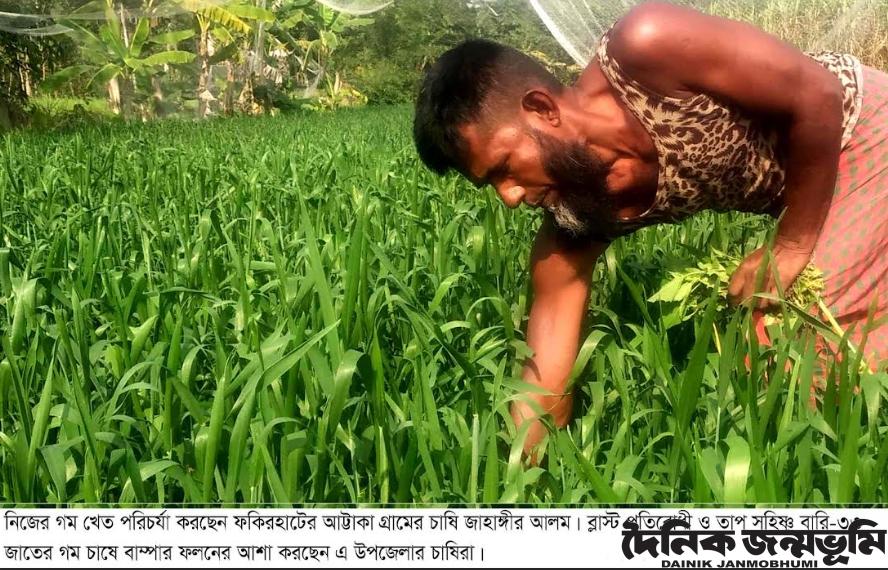 উপজেলার আট্টাকা গ্রামের চাষি জাহাঙ্গীল আলম জানান, তিনি এক একর জমিতে কৃষি বিভাগের সহায়তায় উচ্চ ফলনশীল বারি-৩৩ জাতের গমের প্রদর্শনী প্লট করেছেন। কৃষি বিভাগের পরামর্শে খেত পরিচর্যা করছেন।