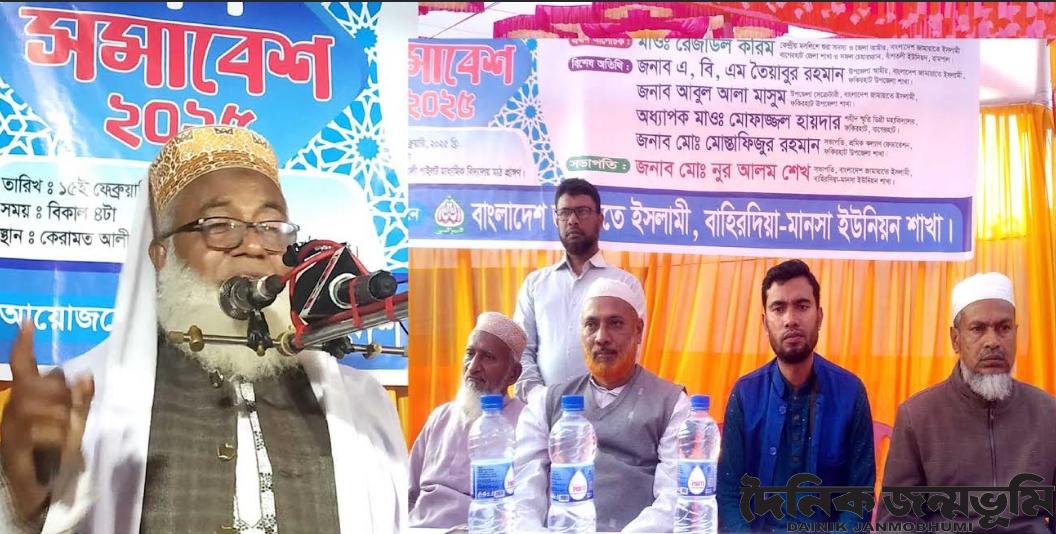 ফকিরহাট প্রতিনিধি: বাংলাদেশ জামায়াতে ইসলামী ফকিরহাট উপজেলার বাহিরদিয়া-মানসা শাখার আয়োজনে গণ সমাবেশ অনুষ্ঠিত হয়েছে। শনিবার সন্ধ্যায় আট্টাকা কে আলী মাধ্যমিক বিদ্যালয় এই গণ সমাবেশ অনুষ্ঠিত হয়। সমাবেশে প্রধান অতিথি ছিলেন কেন্দ্রীয় মসলিশে শুরা সদস্য ও বাংলাদেশ জামায়াতে ইসলামীর সাবেক বাগেরহাট জেলা আমীর অধ্যক্ষ মাও. মশিউর রহমান খান। প্রধান আলোচক কেন্দ্রীয় মসলিশে শুরা সদস্য ও জেলা আমীর মাও. রেজাউল করিম। বিশেষ অতিথি ছিলেন বাংলাদেশ জামায়াতে ইসলামী ফকিরহাট উপজেলা শাখার আমীর এবিএম তৈয়াবুর রহমান, চিতলমারী উপজেলা শাখার আমীর মো. মনিরুজ্জামান, ফকিরহাট উপজেলা শাখার সেক্রেটারি আবুল আলা মাসুম, শহিদ স্মৃতি কলেজের অধ্যাপক মাও. মোফাজ্জল হায়দার, শ্রমিক কল্যান ফেডারেশন ফকিরহাট শাখার সভাপতি মো. মোস্তাফিজুর রহমান। এতে সভাপতিত্ব করেন জামায়াতে ইসলামী বাহিরদিয়া-মানসা ইউনিয়ন শাখার সভাপতি মো. নুর আলম। গণ সমাবেশে বাংলাদেশ জামায়াতে ইসলামী ও অঙ্গ সংগঠনের বিপুল সংখ্যক নেতাকর্মী উপস্থিত ছিলেন।