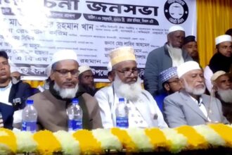 ফকিরহাট প্রতিনিধি : বাগেরহাটের ফকিরহাটে বাগেরহাট-১ আসন (ফকিরহাট-মোল্লাহাট-চিতলমারী) এর বাংলাদেশ জামায়াতে ইসলামীর মনোনিত সংসদ সদস্য প্রার্থী অধ্যক্ষ মাওলানা মশিউর রহমান খানের (দাঁড়িপাল্লা) প্রতীকের নির্বাচনী জনসভা অনুষ্ঠিত হয়েছে। ১১ দলীয় ঐক্য জোটের উদ্যোগে রবিবার (৮ ফেব্রুয়ারি) সন্ধ্যায় ফকিরহাট আদর্শ বিদ্যালয় সংলগ্ মাঠে অনুষ্ঠিত জনসভায় প্রধান অতিথির বক্তব্য রাখেন বাগেরহাট-১ আসন এর বাংলাদেশ জামায়াতে ইসলামীর সংসদ সদস্য প্রার্থী অধ্যক্ষ মাওলানা মশিউর রহমান খান। অনুষ্ঠানে সভাপতিত্ব করেন বাংলাদেশ জামায়াতে ইসলামীর ফকিরহাট উপজেলা শাখার আমির মাওলানা এবিএম তৈয়াবুর রহমান। বাংলাদেশ জামায়াতে ইসলামীর ফকিরহাট উপজেলা শাখার সেক্রেটারী শেখ আবুল আলা মাসুম ও সহকারি সেক্রেটারি শেখ সুমন হোসেনের সঞ্চালনায় প্রধান বক্তা ছিলেন বাগেরহাট জেলা আমির মাওলানা রেজাউল করিম। এসময় অন্যান্যদের মধ্যে বক্তব্য রাখেন বাগেরহাট বায়তুল মাল সেক্রেটারী মাওলানা আবু বকর সিদ্দিক, নির্বাচনী প্রধান এজেন্ট অধ্যাপক মোফাজ্জল হায়দার, এনসিপির বাগেরহাট জেলার সিনিয়র সদস্য মো: লাবিব আহমেদ, এনসিপির ফকিরহাট উপজেলা শাখার সভাপতি মিজানুর রহমান, বাংলাদেশ খেলাফত মজলিস এর ফকিরহাট শাখার সভাপতি মাওলানা মুরাদুল ইসলামসহ অন্যান্যরা।
