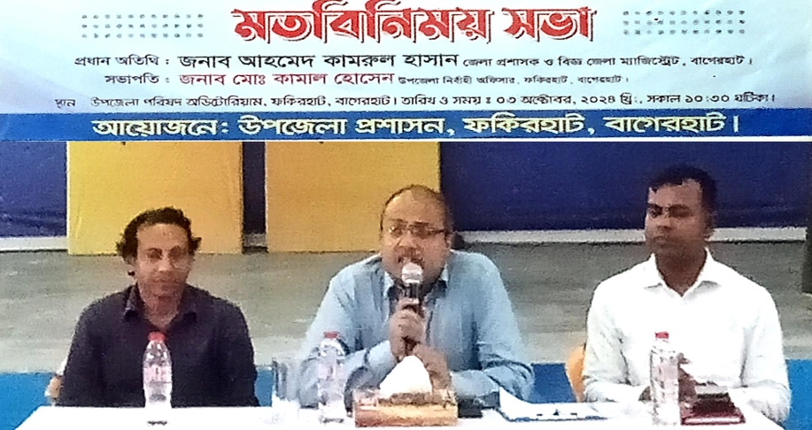 ফকিরহাট প্রতিনিধি : বাগেরহাটের নবাগত জেলা প্রশাসক ও বিজ্ঞ জেলা ম্যাজিষ্ট্রেট আহমেদ কামরুল হাসান এর ফকিরহাট উপজেলা উপজেলার সকল কর্মকর্তাদের মতবিনিময় সভা অনুষ্ঠিত হয়েছে।