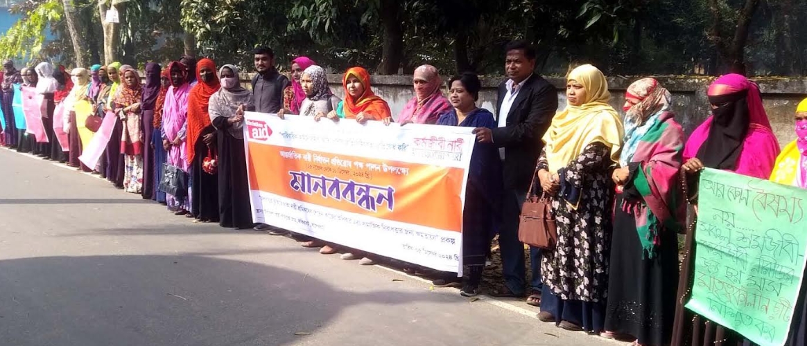 মানবন্ধন উপস্থিত বক্তারা বলেন নারীর উপর সকল প্রকার হয়রানী, নির্যাতন ও সহিংসতা প্রতিরোধ এবং প্রতিকারে সরকার ও প্রশাসনের পক্ষ থেকে কার্যকর পদক্ষেপ নেওয়ার জোর দাবী জানান। এছাড়া নারীর উপর যেকোন ধরনের সহিংসতা সংঘটনকারী ব্যক্তি ও তার ।াম্যয়-প্রশ্রয় দানকারীর বিরুদ্ধে আইনর্শঙ্খলা রক্ষাকারী বাহিনী ও প্রশাসন কঠোর ব্যবস্থা নেওয়া সহ নানা দাবী জানান বক্তারা।