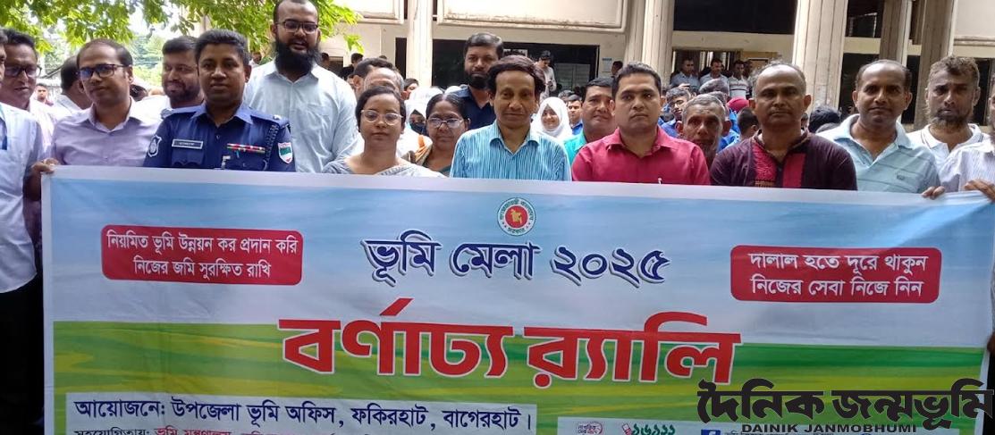 ফকিরহাট প্রতিনিধি : “নিয়ুমত ভূমি উন্নয়ন কর প্রদান করি, নিজের জমি সুরক্ষিত রাখি” এই প্রতিপাদ্য বিষয়কে সামনে রেখে বাগেরহাটের ফকিরহাটে ভূমি মেলা-২০২৫ অনুষ্ঠিত হয়েছে।এ উপলক্ষে বণার্ঢ্য র্যালি ও জনসচেতনামূলক সভা অনুষ্ঠিত হয়। উপজেলা ভূমি অফিসের আয়োজনে বুধবার (২৮ মে) সকাল ১০টায় উপজেলা পরিষদ অডিটোরিয়ামে জনসচেতনামূলক সভায় প্রধান অতিথির বক্তব্য রাখেন উপজেলা নির্বাহী কর্মকর্তা সুমনা আইরিন। ফকিরহাট সহকারী কমিশনার (ভূমি) এএসএম শাহনেওয়াজ মেহেদীর সভাপতিত্বে অনুষ্ঠানে বিশেষ অতিথি ছিলেন উপজেলা প্রাণি সম্পদ কর্মকর্তা মো. জাহিদুর রহমান, উপজেলা স্বাস্থ্য ও পরিবার পরিকল্পনা কর্মকর্তা ডা. মো. আসাদুজ্জামান সাগর, উপজেলা কৃষি কর্মকর্তা শেখ সাখাওয়াত হোসেন, সিনিয়র উপজেলা মৎস্য কর্মকর্তা শেখ আসাদুল্লাহ, ফকিরহাট মডেল থানার ভারপ্রাপ্ত কর্মকর্তা (ওসি) আবদুর রাজ্জাক মীর, উপজেলা সাব-রেজিষ্ট্রার মো. মহিদুল ইসলাম। এসময় বিভিন্ন সরকারি দপ্তরের কর্মকর্তা, ইউপি সদস্য, শিক্ষক, গনমাধ্যমকর্মি ও শিক্ষার্থী উপস্থিত ছিলেন। সভা শেষে বর্ণাঢ্য র্যালি উপজেলার বিভিন্ন সড়ক প্রদক্ষিণ করে।