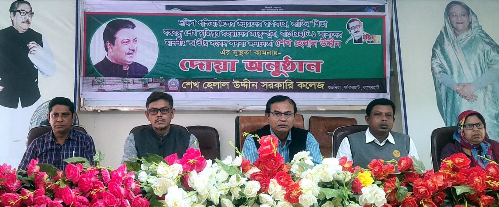 শেষে সংসদ সদস্য শেখ হেলাল উদ্দীনের দ্রুত সুস্থতা কামনায় দোয়া পরিচালনা করেন ইসলাম শিক্ষা বিভাগের সহকারী অধ্যাপক মোঃ হোসাইন ছায়েদীন।