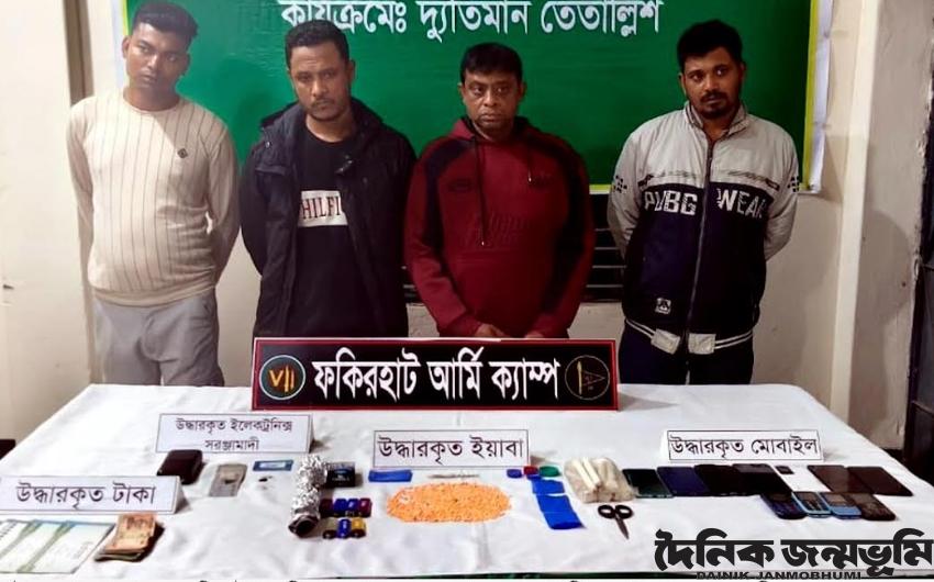 ফকিরহাট যৌথ অভিযানে ইয়াবাসহ গ্রেপ্তার ৪
