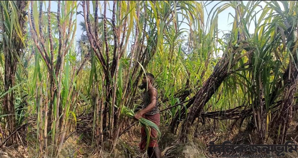 সরেজমিন ঘুরে দেখা গেছে, আখের খেত পরিচর্যায় ব্যস্ত সময় পার করছেন কৃষক জাহাঙ্গীর আলম ও তার স্ত্রী সোমা বেগম। গড়ে ১৪ থেকে ১৭ ফুট লম্বা কালো জাতের আখ হেলে পড়েছে খেতের মধ্যে। পার্শ¦বর্তী দুই কৃষক এসেছেন খেত দেখতে। খেতের সমস্ত আখ পাইকারী দামে কিনে নিতে ব্যবসায়িরাও আসছে সেখানে।