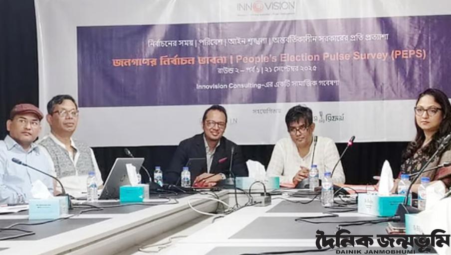 ইনোভেশন কনসালটিংয়ের ব্যবস্থাপনা পরিচালক রুবাইয়াৎ সারওয়ার জরিপের ফলাফল তুলে ধরেন। তিনি জানান, চলতি বছরের ২ থেকে ১৫ সেপ্টেম্বর পর্যন্ত ১০ হাজার ৪১৩ জন ভোটারের ওপর এই জরিপ চালানো হয়।