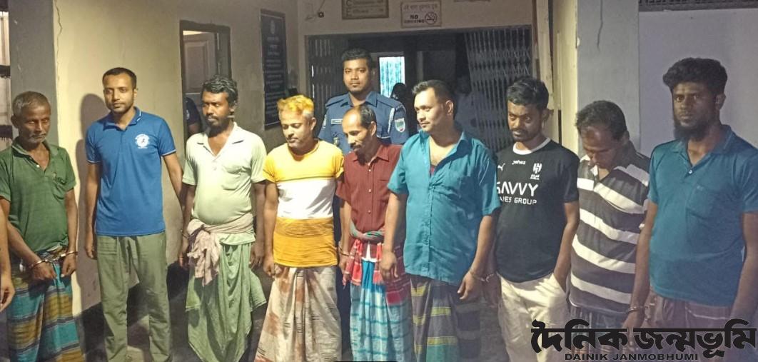 পুলিশ এবং স্থানীয়রা জানায়, শুক্রবার দুপুরে হাটবাটি গ্রামে পরিমল বিশ^াসের চায়ের দোকানে বসে তারা অর্থের বিনিময়ে জুয়া খেলছিল। গোপন সংবাদের ভিত্তিতে পুলিশ উপস্থিত হলে তারা পালাবার চেষ্টা করে। এসময় কিসমত ফুলতলা গ্রামের মৃত মিন্টু ডাকুয়ার পুত্র মঞ্জুরুল ইসলাম (৪৬), হাটবাটি গ্রামের হিমাংসু সরকারের পুত্র পলাশ সরকার (৪০), অসিম রায়ের পুত্র অসীত রায় (৩৫), মৃত শোভন বিশ^াসের পুত্র হিমাদ্রী বিশ^াস (৩৫), মৃত গুরুপদা বিশ^াসের পুত্র পরিমল বিশ^াস (৫৫), হোগলবুনিয়া গ্রামের বিমল পালের পুত্র বিপ্লব পাল (৪০), গৌরচদ্র বাহারের পুত্র প্রনব বাহার (৩৫) মৃত অতুল সরদারের পুত্র দীন সরদার (৫০) ও সাতক্ষীরা জেলার আশাশুনি থানার মাড়িয়ালা গ্রামের ইসমাইল মোল্লার পুত্র মোবারক মোল্লা (৩৫)। এসময় তাদের নিকট থেকে নগদ ৮৪০ টাকা উদ্ধার হয়।