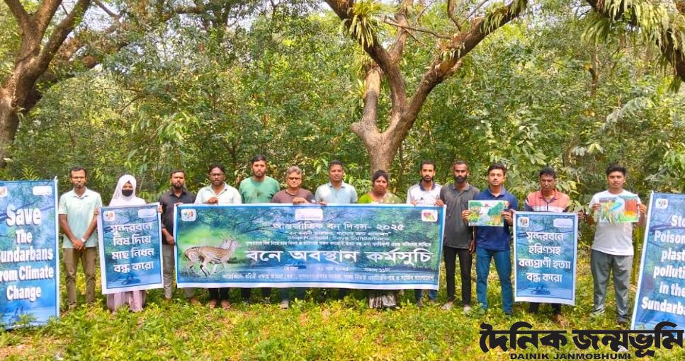 বনের মধ্যে অবস্থান করে আন্তর্জাতিক বন দিবসে পালন
